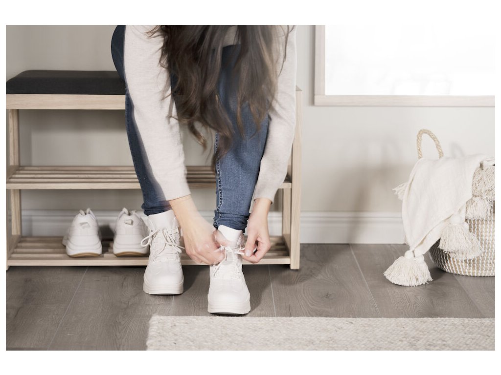 Botník Confetti nabízí dva prostorné police pro uložení vaší obuvi, což pomáhá udržet váš vstupní prostor organizovaný a uklizený. Nad police se nachází pohodlné sedátko čalouněné odolnou látkou, které poskytuje komfortní místo pro obouvání a zouvání bot. Moderní vzhled a pevná konstrukce ho činí ideálním doplňkem do předsíně či šatny.