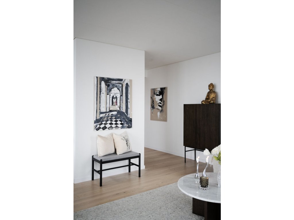 Lavice Milford z lakovaného masivního dubu se sedákem z odolné polyesterové tkaniny šedé barvy. Pevná konstrukce z dubového dřeva zajišťuje dlouhou životnost a stabilitu, zatímco měkké čalounění poskytuje pohodlí při obouvání nebo odpočinku. Elegantní vzhled a nadčasový design navíc skvěle doplní každý interiér. Výborná volba pro moderní a zároveň útulný domov. Stylová lavice, která se hodí stejně dobře do předsíně jako do ložnice a koupelny.