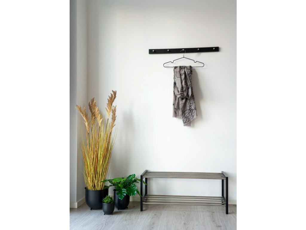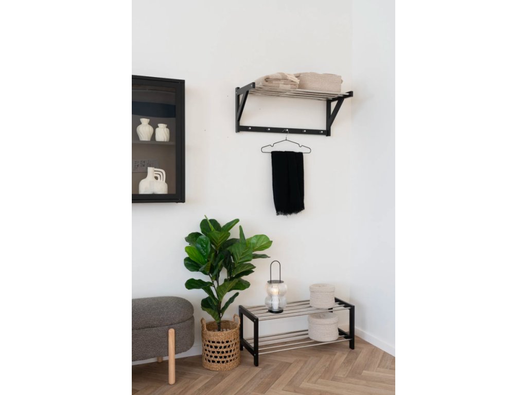 Stylový dřevěný botník Padova od dánské značky House Nordic v černé barvě je ideální pro organizaci vašich bot. Rozměry 78x34 cm a dvě prostorné police z 8 ocelových trubek poskytují dostatek místa pro ukládání obuvi. Vyrobený z topolového dřeva, nabízí pevnost, odolnost a moderní vzhled.