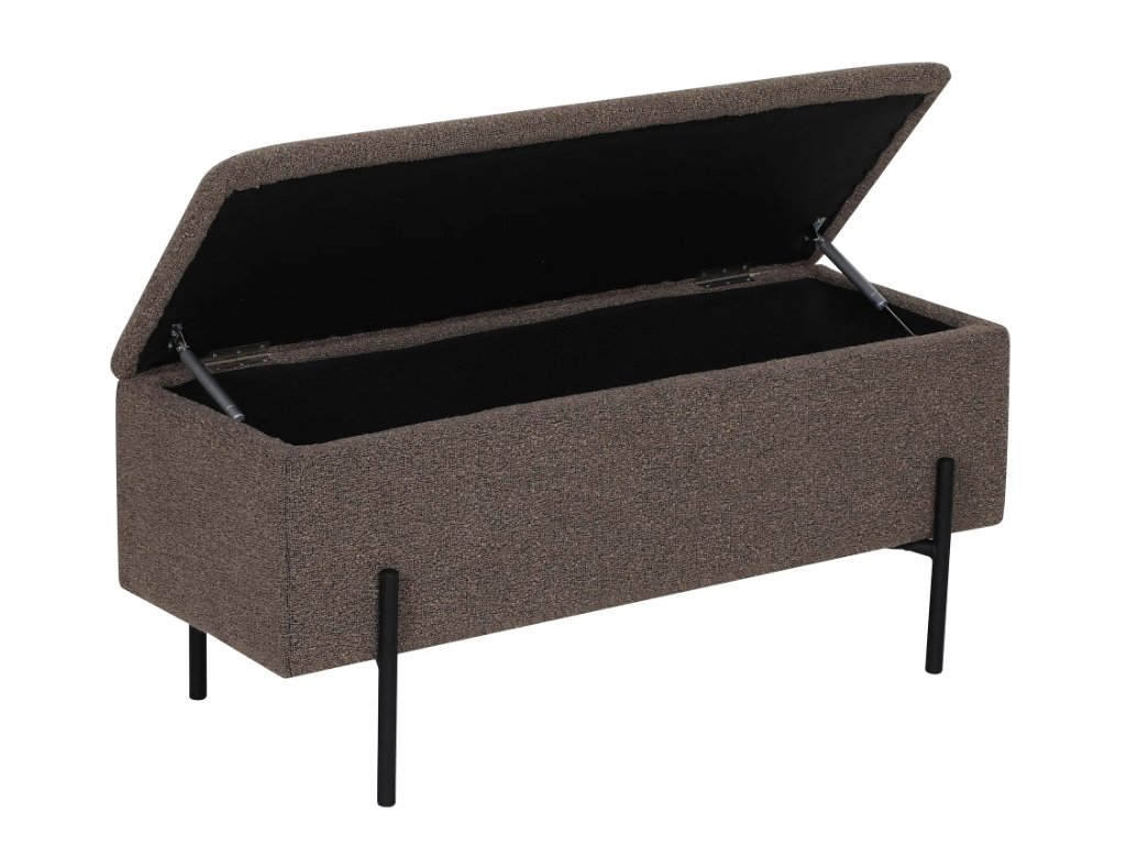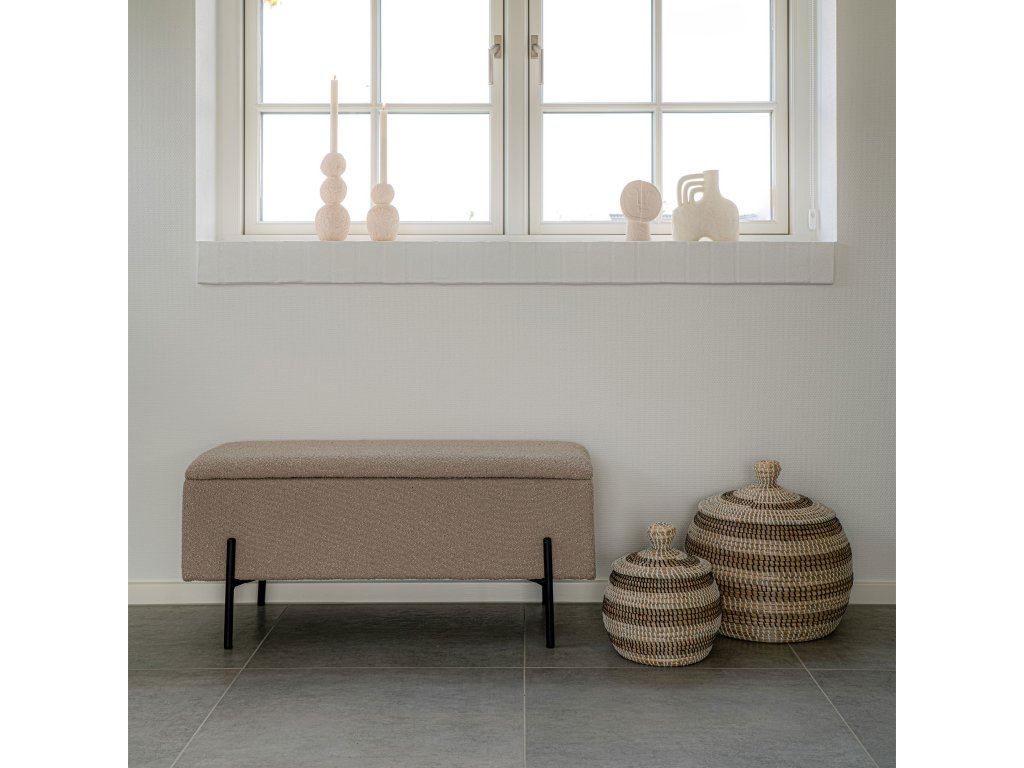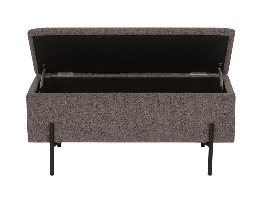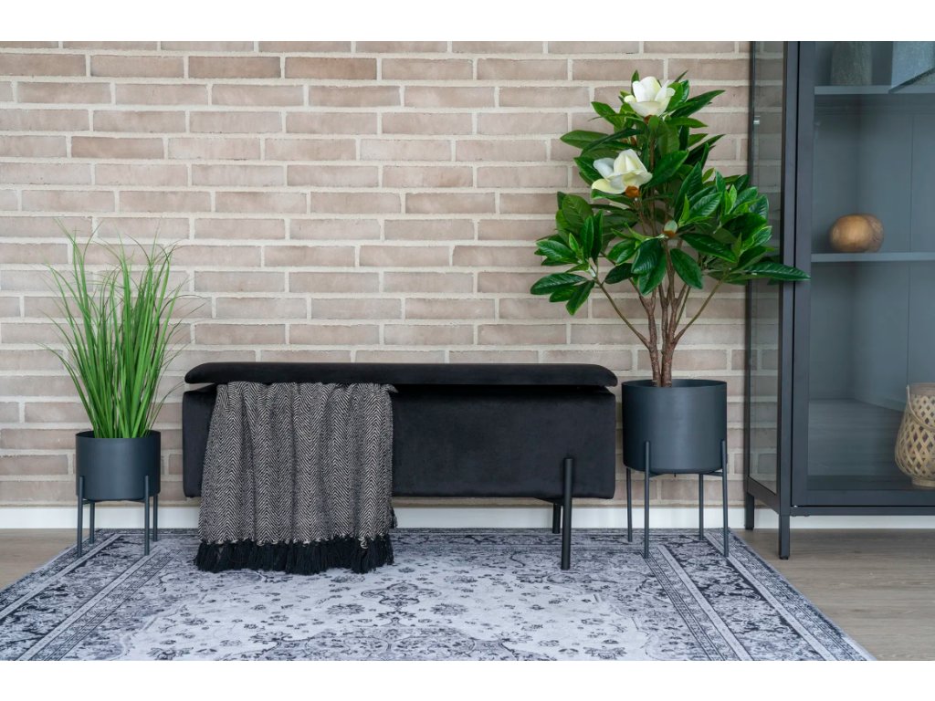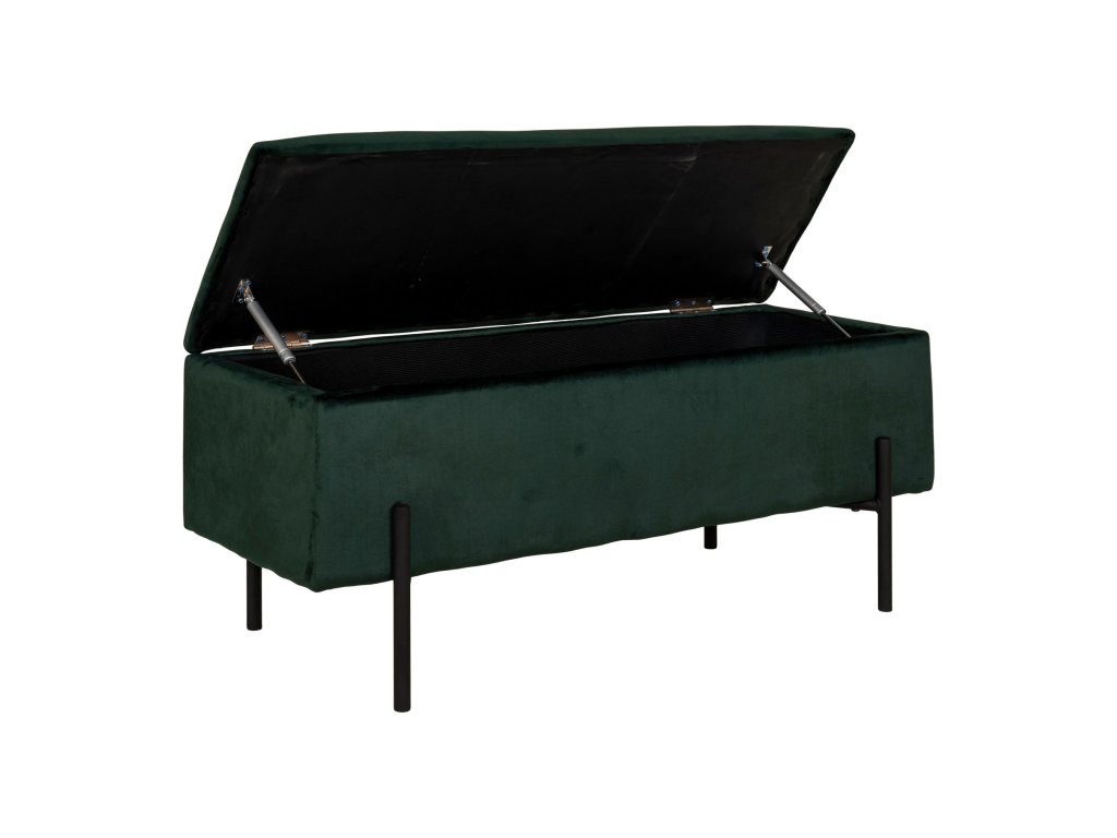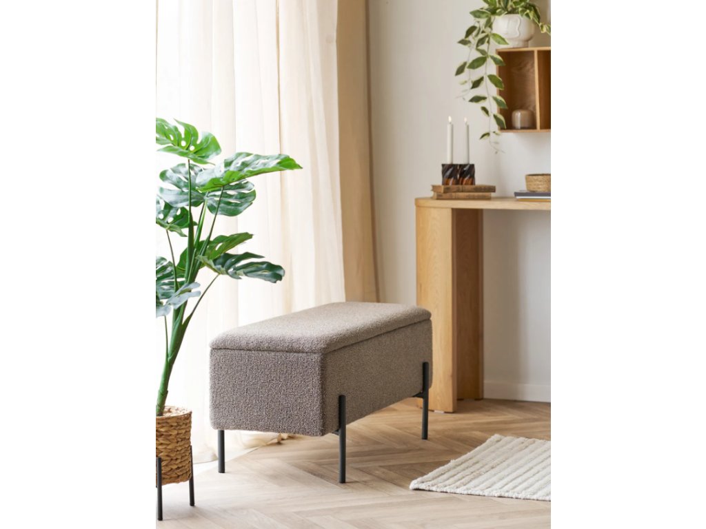 Stylová lavička s úložným prostorem v barvách černé, béžové, zelené nebo šedé, o rozměrech 95×43 cm Watford, nabízí praktické a elegantní řešení pro váš interiér či exteriér. Pevná konstrukce a široké sezení poskytují pohodlí, zatímco úložný prostor je ideální pro odložení bot, polštářů nebo dalších doplňků. Perfektní do předsíně, na terasu nebo do obývacího prostoru, kde kombinuje funkčnost s moderním stylem.