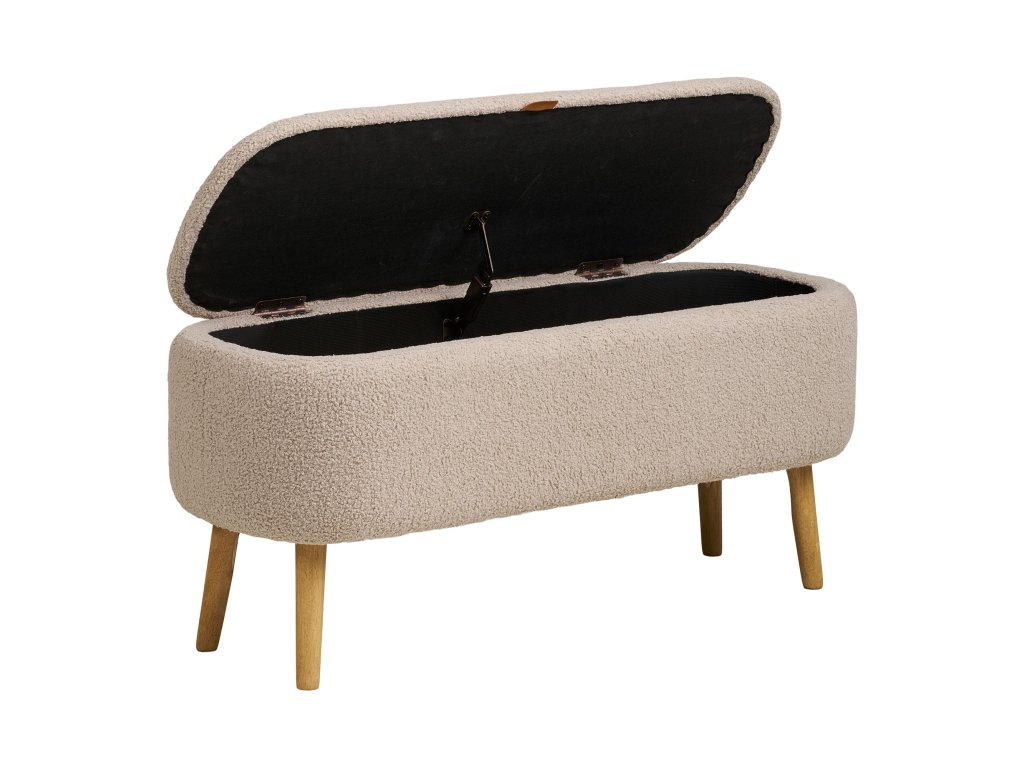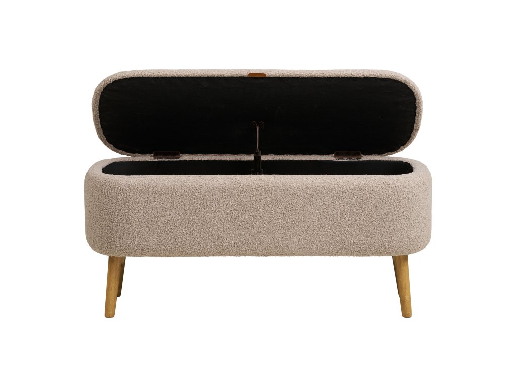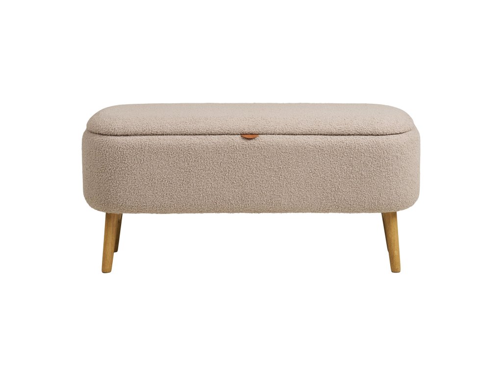 Lavice Harlow Bench spojuje krásu a funkčnost v jednom kousku nábytku. Její jemná bouclé látka v béžovém odstínu působí elegantně a hřejivě, zatímco praktický úložný prostor ukrytý uvnitř přináší chytré řešení pro uspořádání domova.