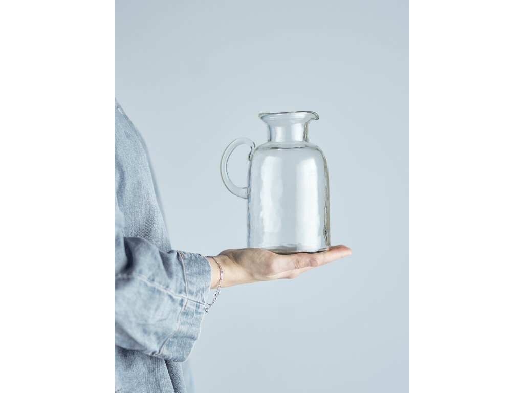 Džbán Asha od Bloomingville je ručně foukaný z čirého skla s lehce tepaným povrchem pro zářivý vzhled. Džbán má praktický nalévací hrdlo a kulatou rukojeť, díky čemuž je ideální pro servírování vody, džusu nebo jiných nápojů.Doplňkové parametry