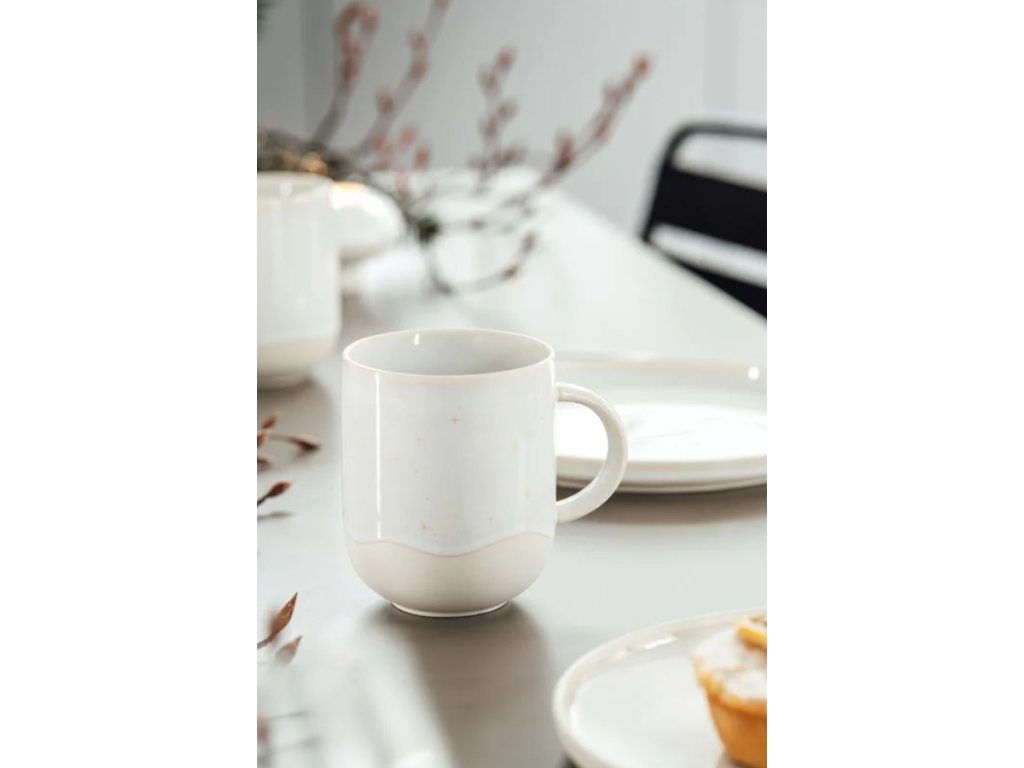 Stylový hrnek z kolekce Winter Glow vyniká zimní efektní glazurou a zlatými motivy, které připomínají zasněžený povrch. Ideální na teplé nápoje během adventu.