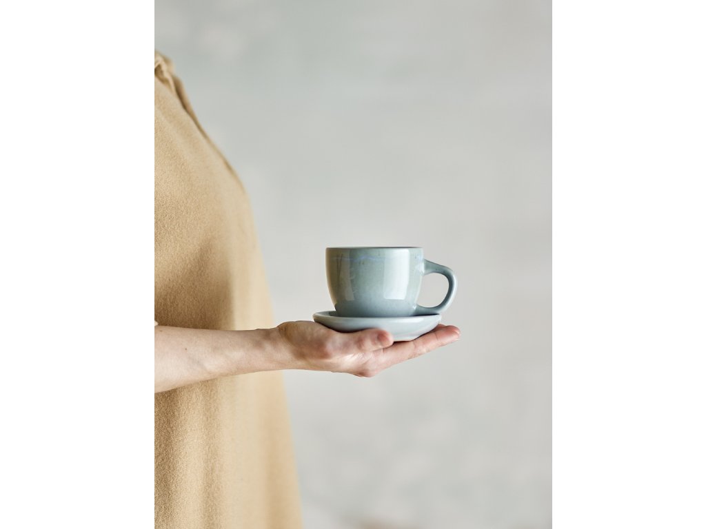Šálek s podšálkem Brenta od Bloomingville je dodáván v sadě čtyř kusů a je vyroben z kameniny s měkkým tvarem a krásnou reaktivní glazurou v odstínech modré. Přirozené variace glazury zajišťují, že každý šálek s podšálkem je jedinečný.Doplňkové parametry