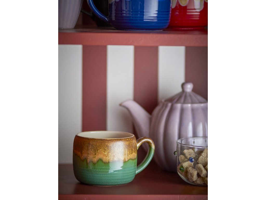 Sada čtyř kusů hrnečku Sheen Cup od Bloomingville je vyrobena z kameniny s krásnou reaktivní glazurou v zelených a zlatých odstínech. Glazura přirozeně stéká po hrnečku a vytváří zářivý vzhled. Reaktivní glazura zajišťuje, že každý hrnek je jedinečný.Doplňkové parametry
