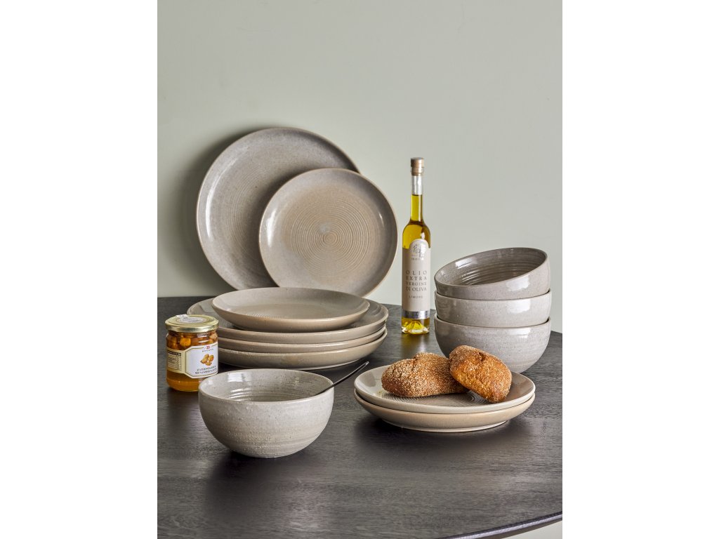 Sada nádobí Taupe od Bloomingville je vyrobena z kameniny v klasickém severském designu. Odstíny šedé a pískové glazury vytvářejí jemnou hru barev a dodávají designu hloubku. Povaha glazury zajišťuje, že každý produkt v sérii je jedinečný a dodává prostírání osobní nádech. Sada Taupe je stylovým a praktickým doplňkem jídelního stolu, protože je vhodná do myčky nádobí, trouby a mikrovlnné trouby. Sada obsahuje 4 talíře Taupe (průměr 27 cm), 4 talíře Taupe (průměr 21,5 cm) a 4 misky Taupe (průměr 13 x výška 6,5 cm).Doplňkové parametry