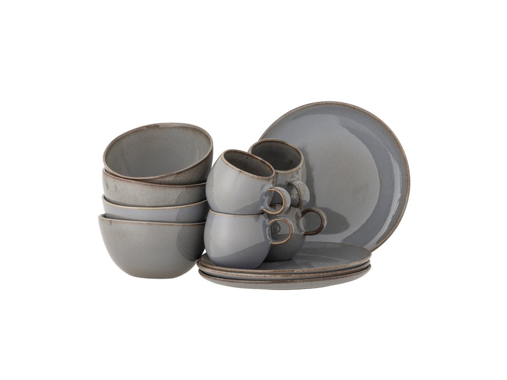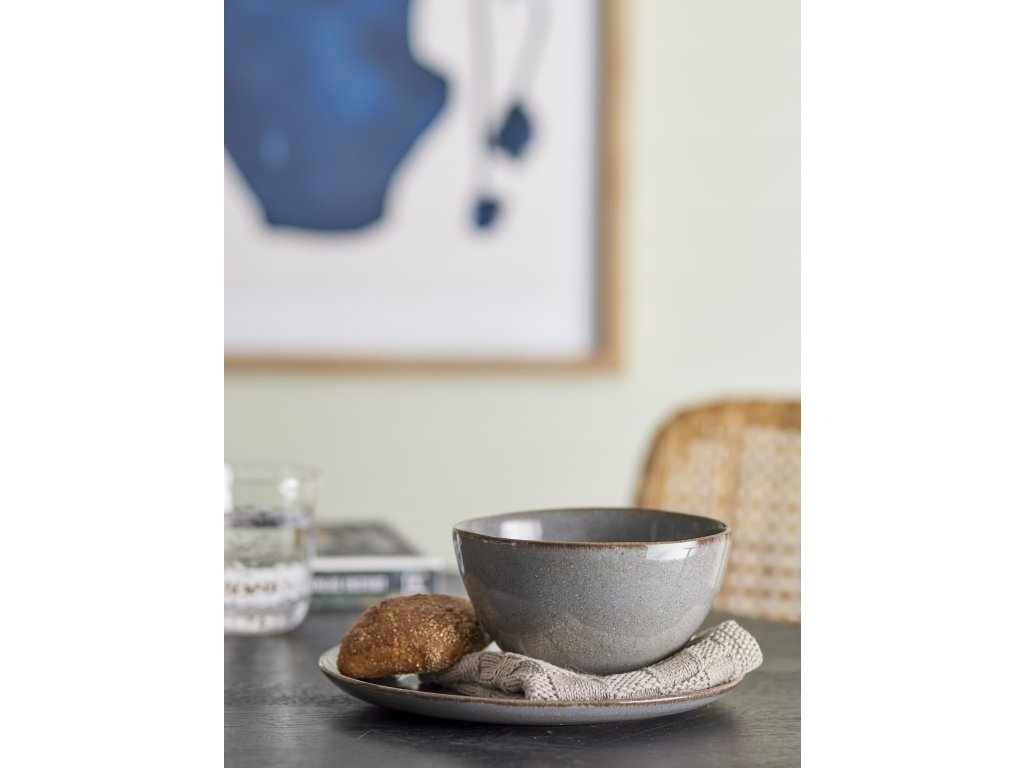 Šedý snídaňový set, kamenina, C:8,5x8/B:15x8/P:22x2, 4x3 ks, sada, Sandrine