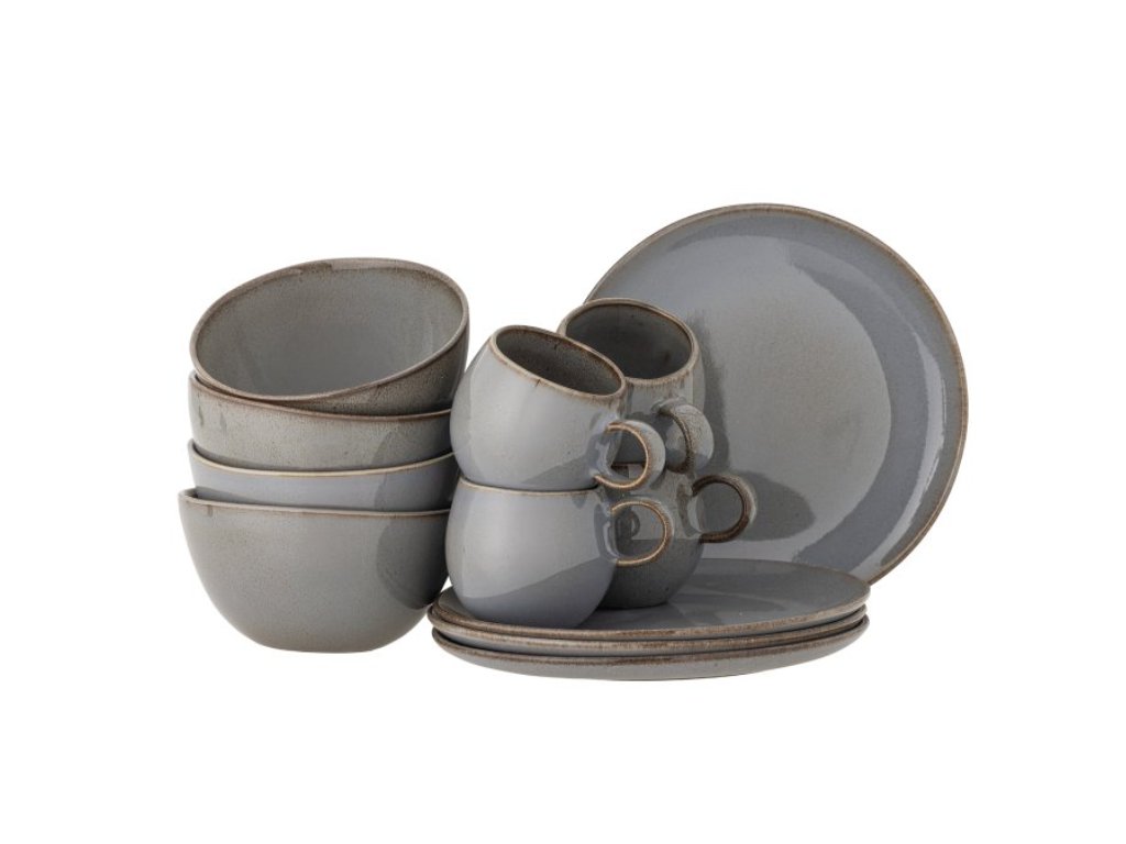 Šedý snídaňový set 12 ks, kamenina, Sandrine
