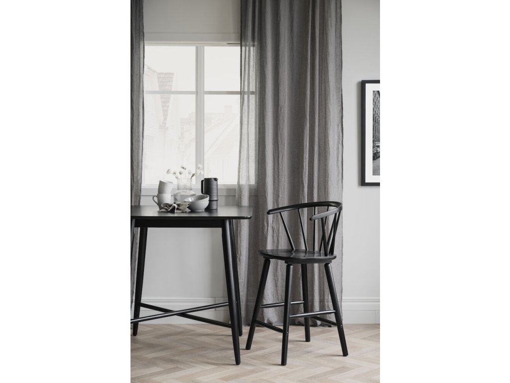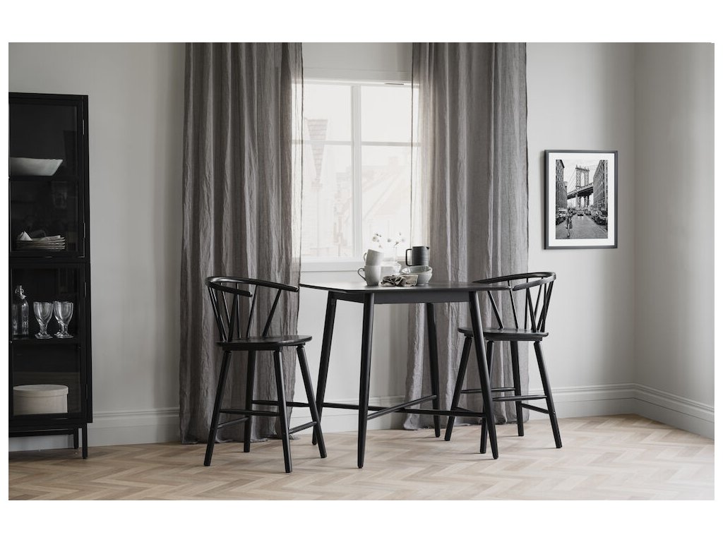 Barový stůl Lotta ve stylovém skandinávském designu. Stabilní stůl s deskou z černého lakovaného dřeva, která se snadno otírá. Barový stůl je pěkně sladěn s naší barovou židlí Carmen. Série Lotta zahrnuje také židle a jídelní stoly v několika různých velikostech.