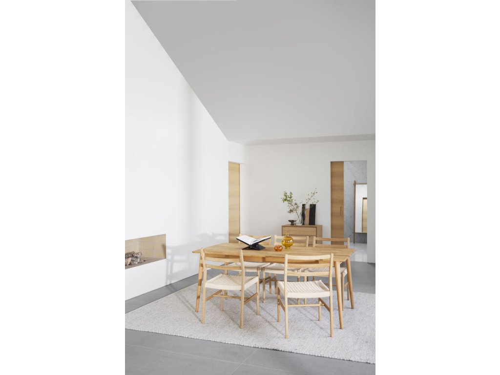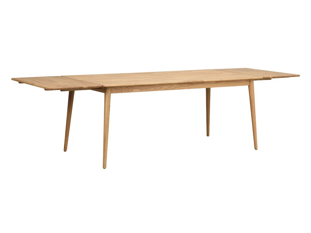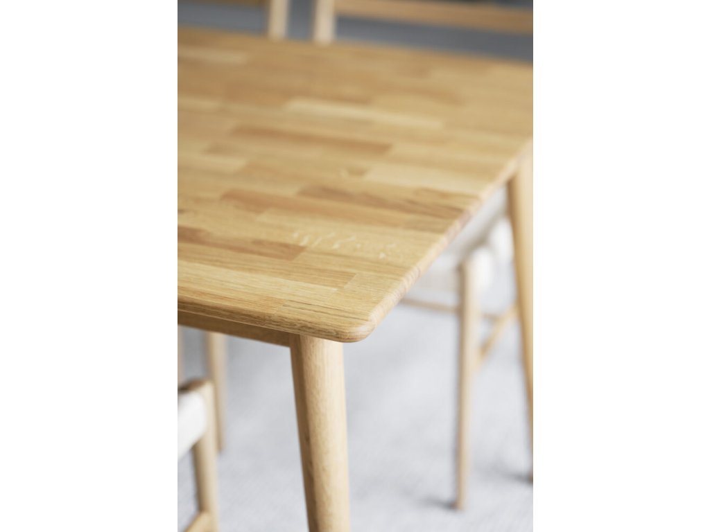 Jídelní stůl Tyler ve skandinávském designu vyrobený z masivního olejovaného dubu, který se skládá ze 100% dřeva s certifikací FSC®. Stůl lze doplnit dvěma přídavnými deskami a dosáhnout délky 280 cm. Mějte na paměti, že olejované povrchy by měly být před použitím ošetřeny nábytkovým olejem a poté pravidelně 2–3krát ročně. To platí zejména pro vrchní povrch stolu, aby si co nejlépe zachoval odolnost vůči skvrnám a poškrábání.