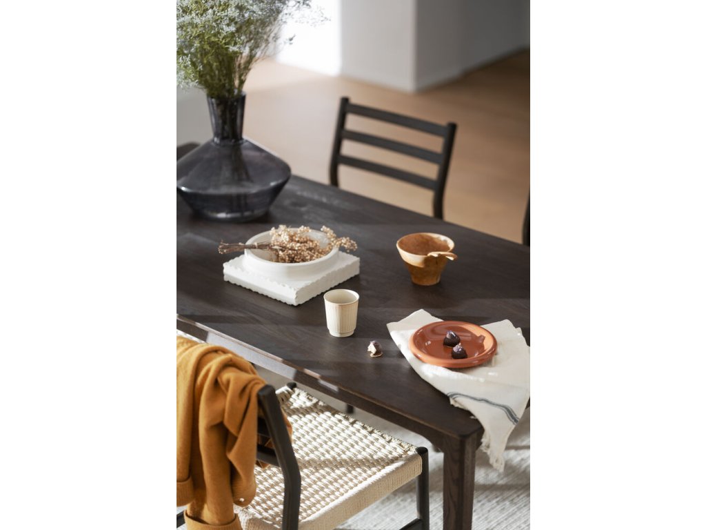 Markham je úhledný obdélníkový jídelní stůl. Stůl je vyroben z masivního hnědého olejovaného dubu s elegantními detaily, jako je zaoblený profil pod deskou stolu a zaoblené nohy. Díky tomuto designu je jídelní stůl velmi oblíbený a odolný napříč generacemi. Jídelní stůl je přizpůsobivý a lze jej pomocí jedné nebo dvou prodlužovacích desek rozložit na 185 nebo 230 cm, což jej činí flexibilním v závislosti na počtu hostů. Markham také zahrnuje větší jídelní stůl a příborník. Kolekce je vyrobena ze 100% dřeva s certifikací FSC®, což z ní činí udržitelnou volbu. POVRCHOVÁ ÚPRAVA: Jídelní stůl byl ošetřen přípravkem Rubio Monocoat, který poskytuje odolný povrch, jenž účinně odolává opotřebení. To znamená, že stůl před použitím nevyžaduje další ošetření. Pro zachování krásy stolu doporučujeme pravidelnou údržbu přípravkem RUBIO Surface Care pro účinné čištění skvrn (v případě potřeby) a také přípravkem RUBIO Refresh Eco pro osvěžení povrchu dřeva (v případě potřeby, až 4krát ročně). Další informace naleznete v pokynech k péči.