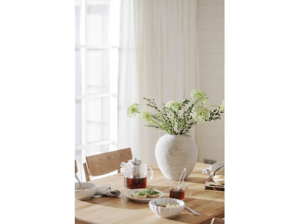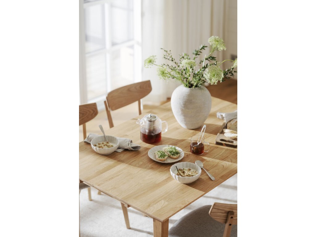 Klasický jídelní stůl z olejovaného dubu, který se dobře hodí do našich severských domovů. Stůl lze doplnit dvěma prodlužovacími deskami a dosáhnout tak délky 240 cm. Jídelní stůl je součástí naší široké série Filippa, která má také úložný prostor, který se k ní dobře hodí. Jídelní stůl je vyroben ze 100% dřeva s certifikací FSC® a je dobrou a udržitelnou volbou. Mějte na paměti, že povrchy ošetřené olejem by měly být před použitím ošetřeny nábytkovým olejem a poté pravidelně 2–3krát ročně. To platí zejména pro horní povrch stolu, aby byl zachována odolnost vůči skvrnám a poškrábání.