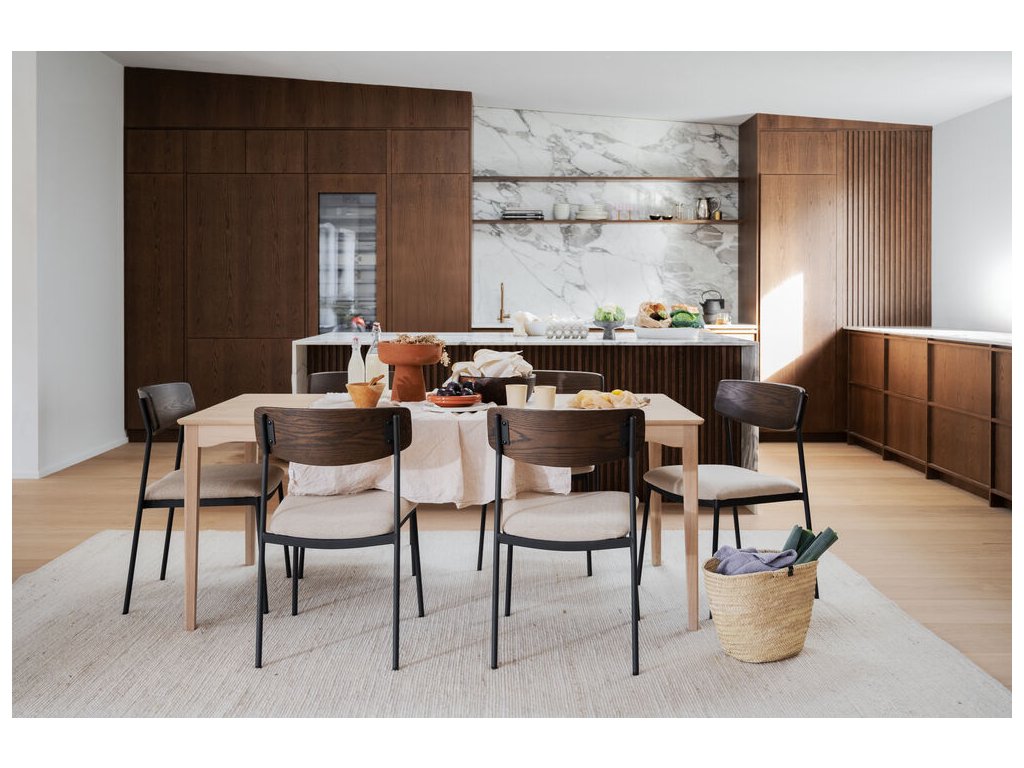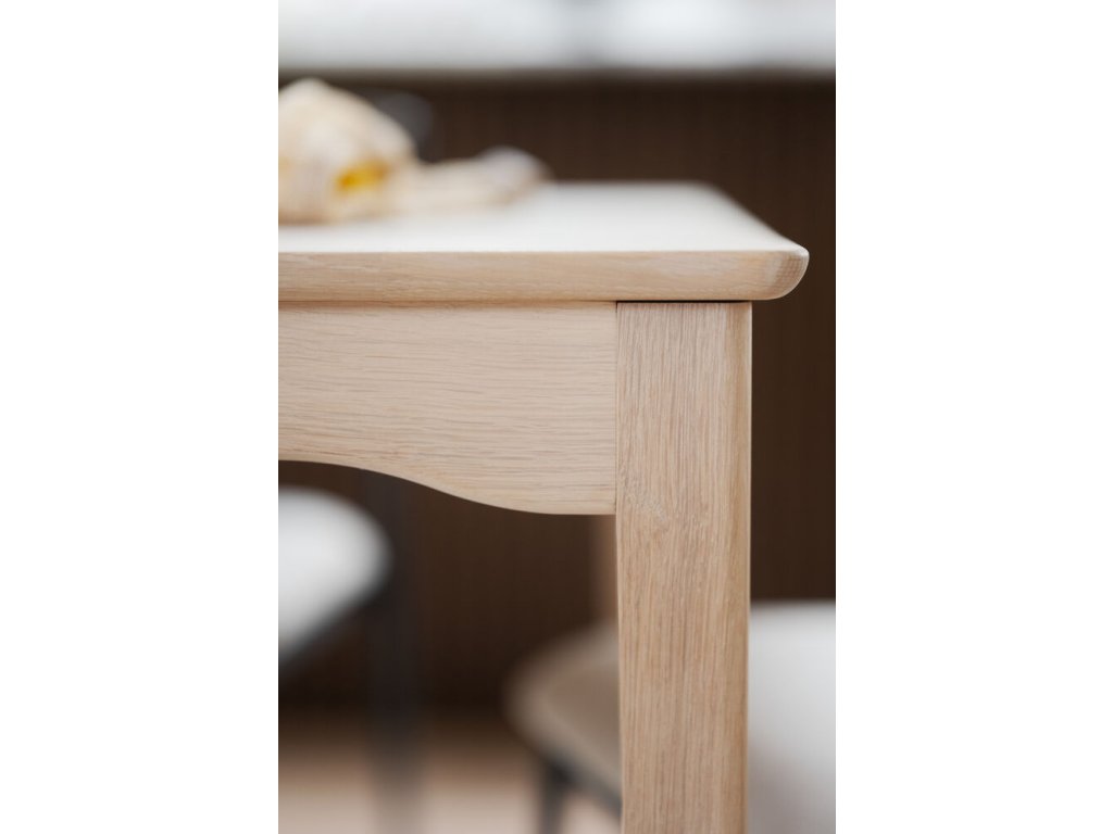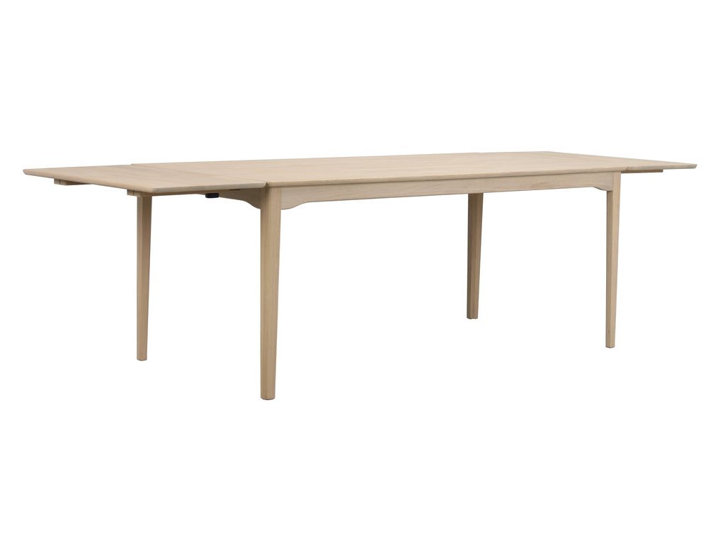 Markham je úhledný obdélníkový jídelní stůl. Stůl je vyroben z masivního bíleného dubu s elegantními detaily, jako je zaoblený profil pod deskou stolu a zaoblené nohy. Díky tomuto designu je jídelní stůl velmi oblíbený a odolný napříč generacemi. Jídelní stůl je přizpůsobivý a lze jej pomocí jedné nebo dvou prodlužovacích desek rozložit na 225 nebo 270 cm, což jej činí flexibilním v závislosti na počtu hostů. Kolekce Markham zahrnuje také menší jídelní stůl a příborník. Kolekce je vyrobena ze 100% dřeva s certifikací FSC®, což z ní činí udržitelnou volbu.
