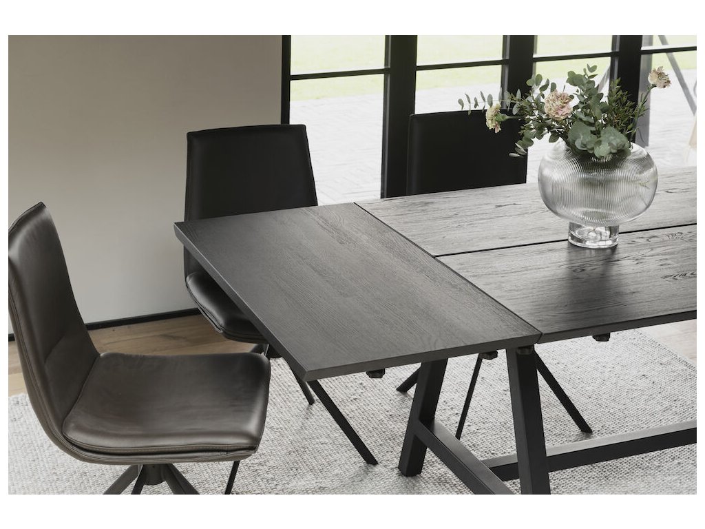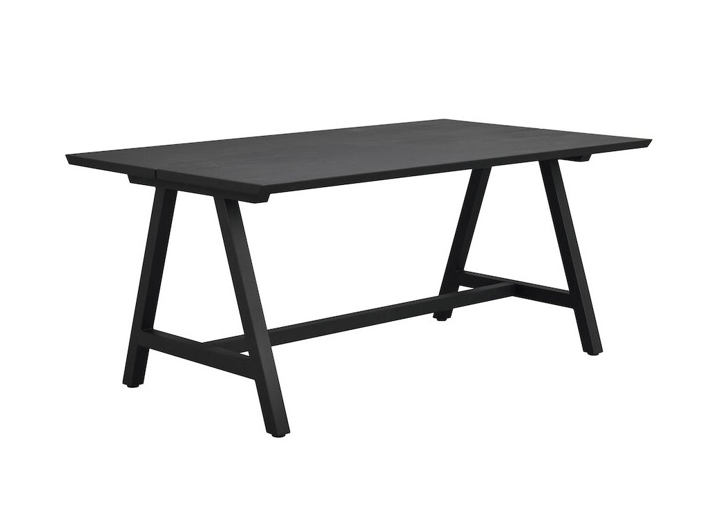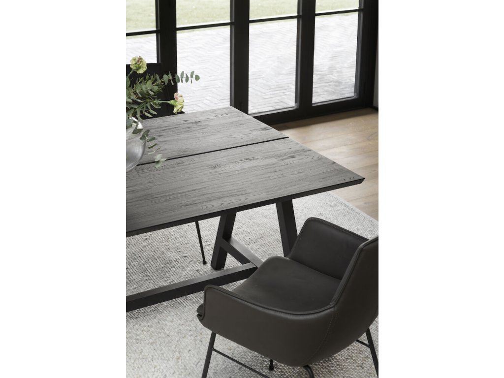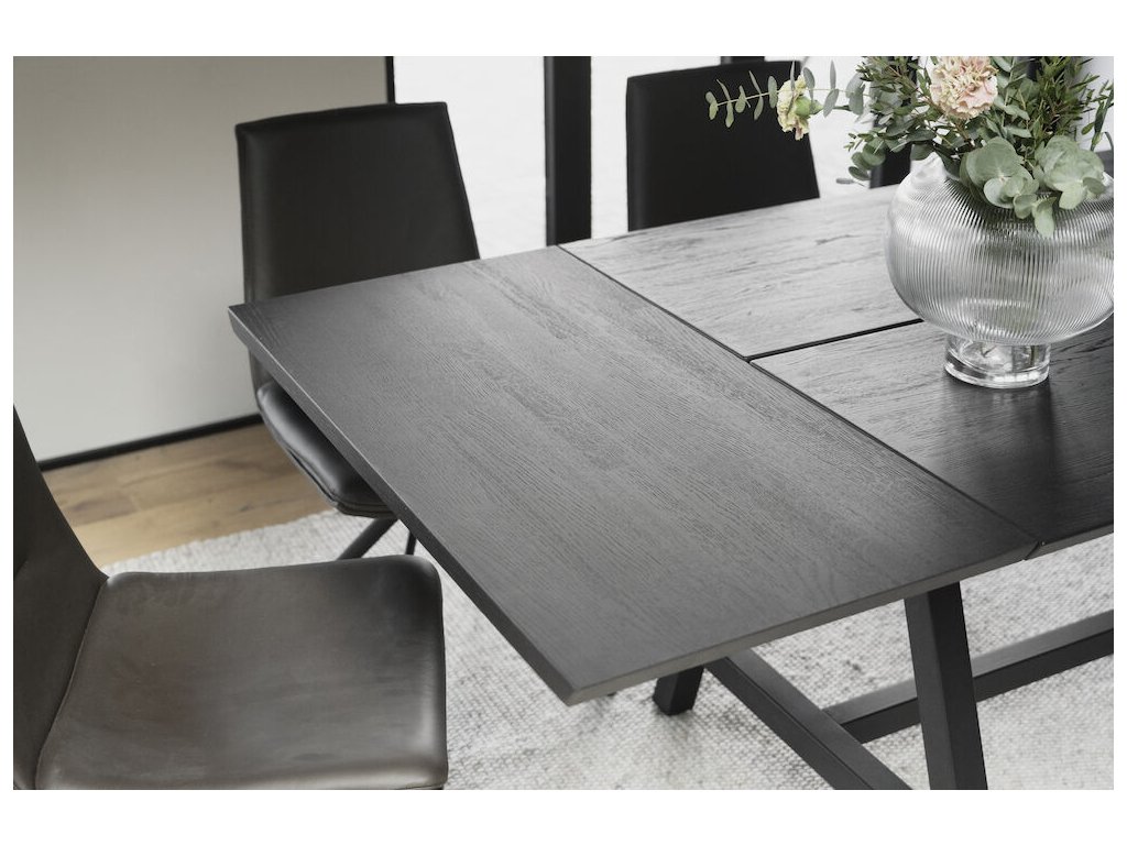 Jídelní stůl Carradale 170 cm z černě lakovaného dubu s certifikací FSC. Dvoudílná masivní deska stolu s kartáčovaným povrchem a práškově lakovanými černými kovovými nohami ve tvaru A. Stůl lze doplnit 1 nebo 2 dalšími prodlužovacími díly (Od 150 do 199 cm) Jídelní stůl je součástí flexibilní série Carradale, kde si můžete stůl navrhnout podle svých představ výběrem z různých tvarů a barev desky stolu a požadovaného typu nohou.