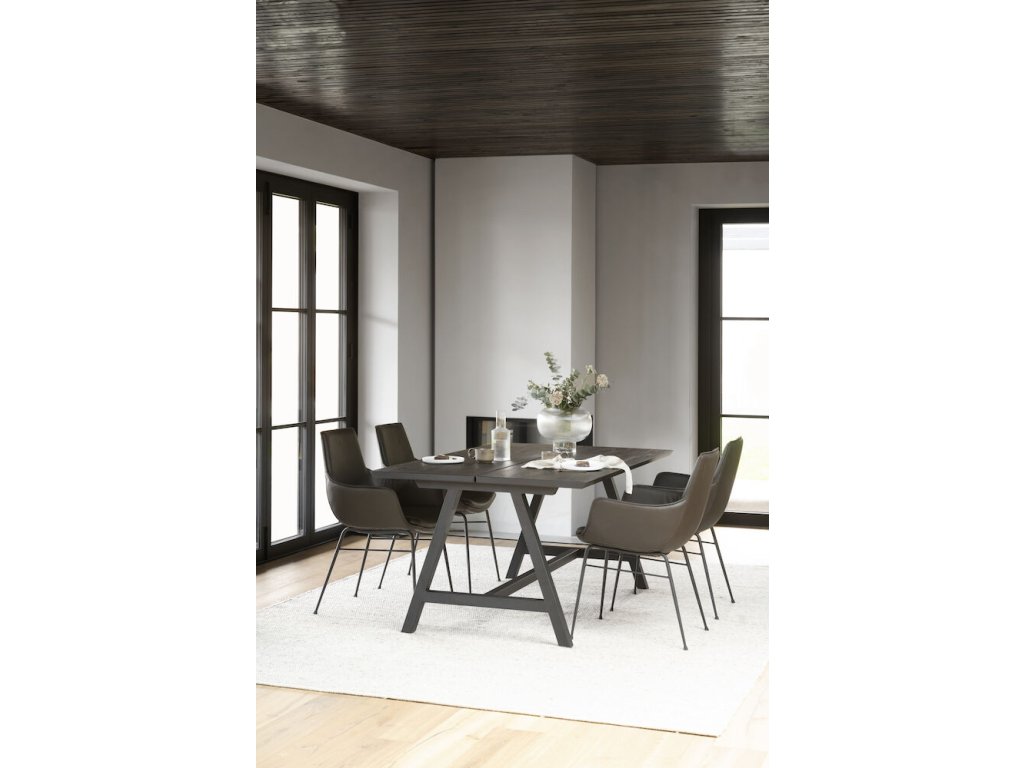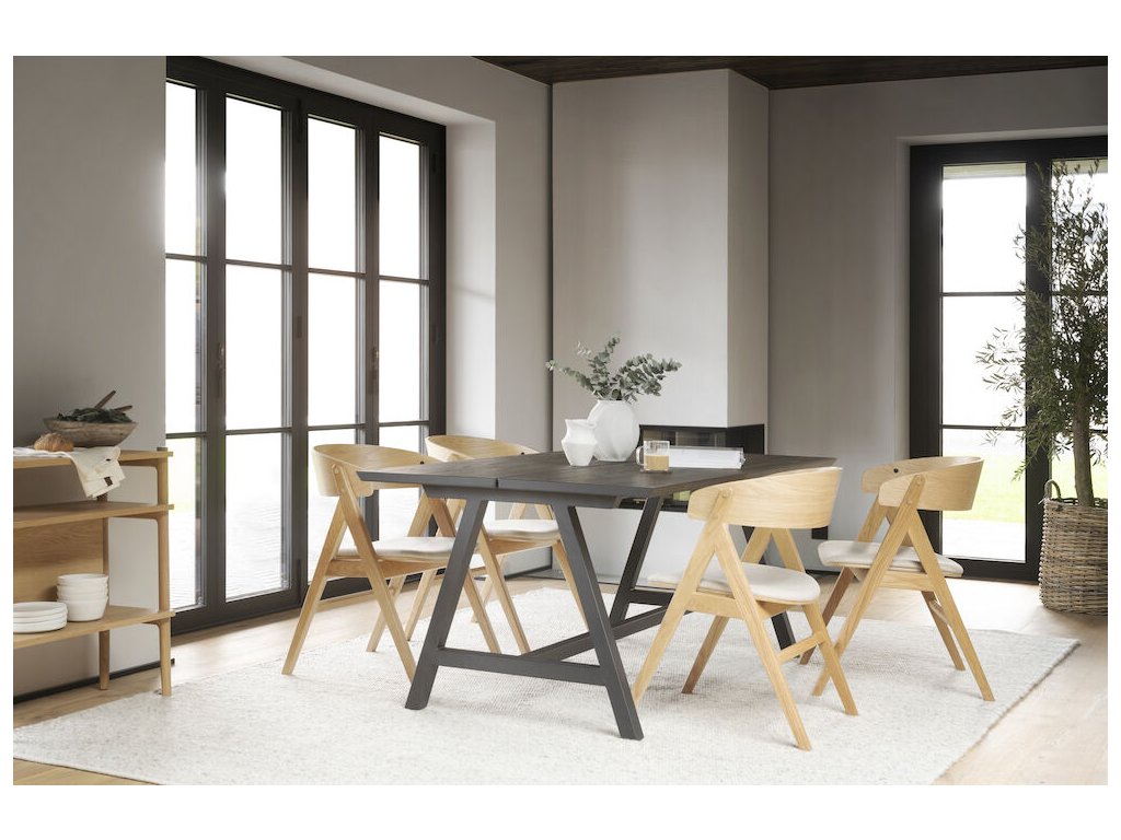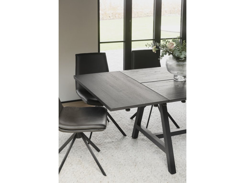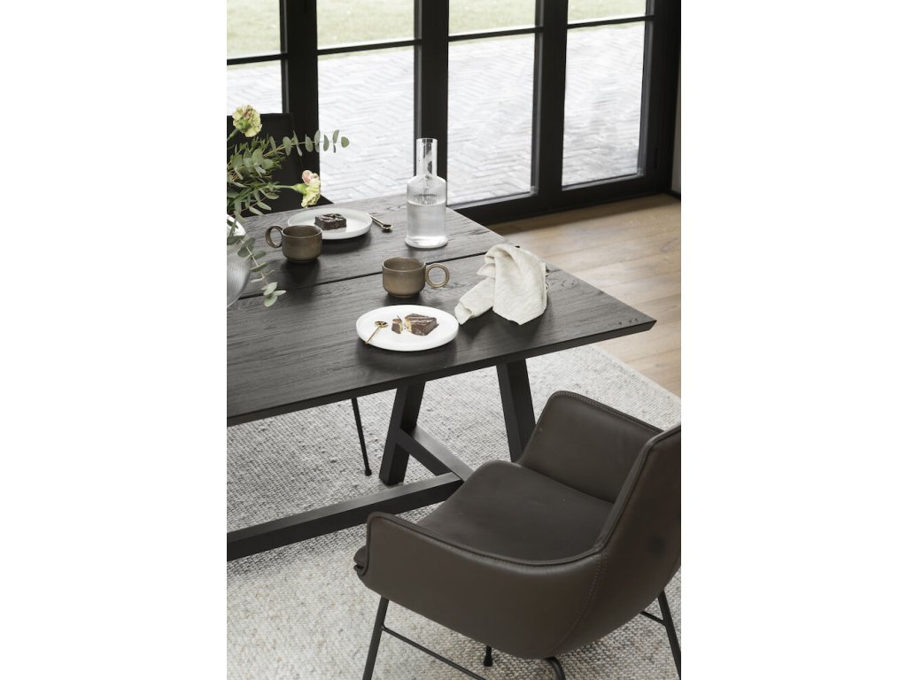 Jídelní stůl Carradale 170 cm z černě lakovaného dubu s certifikací FSC. Dvoudílná masivní deska stolu s kartáčovaným povrchem a práškově lakovanými černými kovovými nohami ve tvaru A. Stůl lze doplnit 1 nebo 2 dalšími prodlužovacími díly (Od 150 do 199 cm) Jídelní stůl je součástí flexibilní série Carradale, kde si můžete stůl navrhnout podle svých představ výběrem z různých tvarů a barev desky stolu a požadovaného typu nohou.