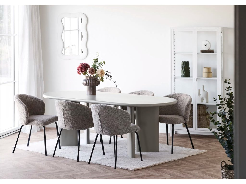 Deska o rozměrech 100 × 220 cm je pevná a odolná vůči každodennímu používání. Její teplý pískový tón přidává prostoru přirozený a sofistikovaný vzhled, který se snadno kombinuje s různými barvami židlí a dekoracemi.
