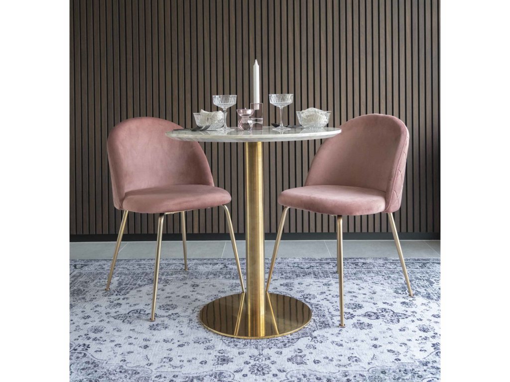 Stůl Bolzano je perfektní volbou do moderních, minimalistických i glamour interiérů. Zlatá noha dodává luxusní charakter, zatímco bílý mramorový dekor působí čistě a sofistikovaně.