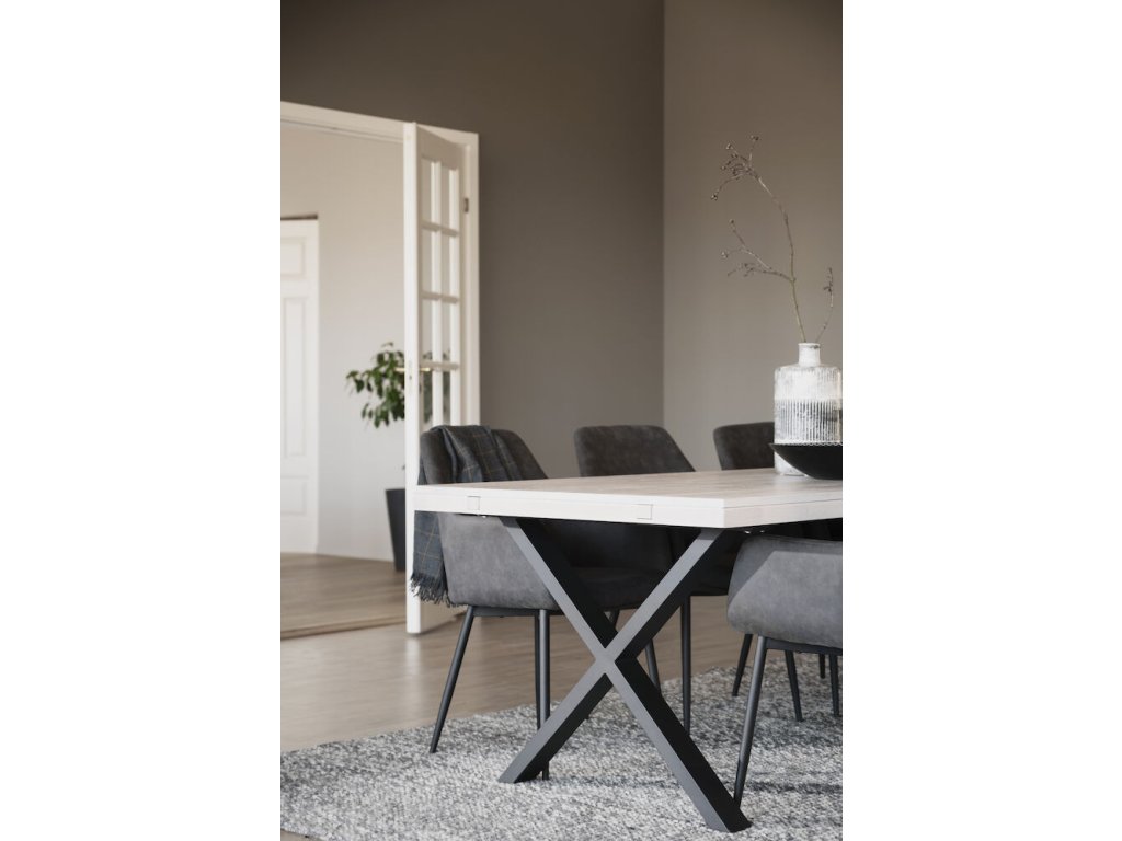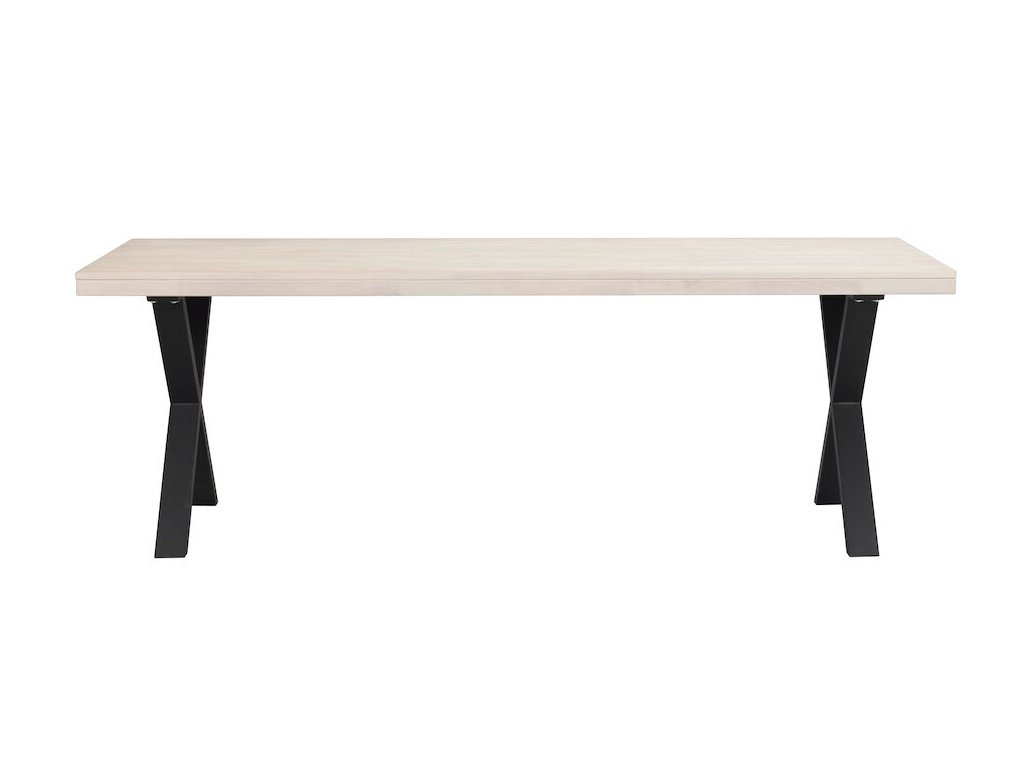 Jídelní stůl Brooklyn o délce 220 cm s deskou z bíleného dubu a černými nohami ve tvaru X z práškově lakovaného kovu s pískovou texturou. Deska stolu je vyrobena z masivního, prstově spojovaného evropského dubu ošetřeného bíleným olejem a má hladký povrch. Vrchní desku lze doplnit 1 nebo 2 prodlužovacími deskami o délce 50 cm. Jídelní stůl je součástí flexibilní série Brooklyn - můžete si navrhnout jídelní stůl přesně podle svých představ pomocí tří jednoduchých možností - vyberte si barvu/povrchovou úpravu, velikost a typ podnoží. Široká série Brooklyn zahrnuje také úložné prostory, konferenční stolky a TV stolky - všechny díly mají certifikaci FSC®. Mějte na paměti, že povrchy ošetřené olejem by měly být před použitím ošetřeny nábytkovým olejem a poté pravidelně 2-3krát ročně. To platí zejména pro horní povrch jídelního stolu, aby byla zachována odolnost vůči skvrnám a poškrábání. Před olejováním nábytku je třeba povrch vyčistit od nečistot a mastnoty, k tomu by měl být použit čistič dřeva určený k tomuto účelu.