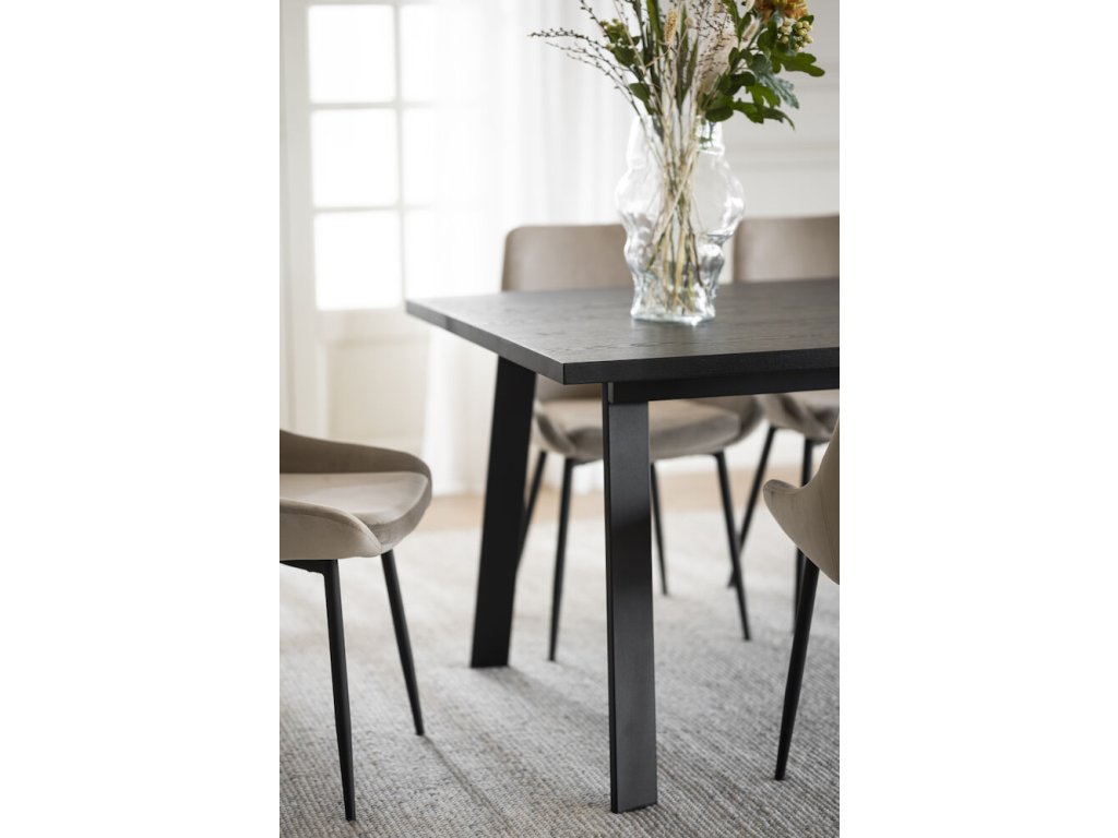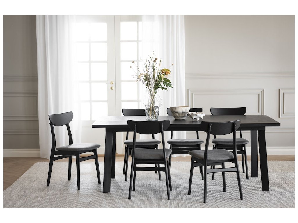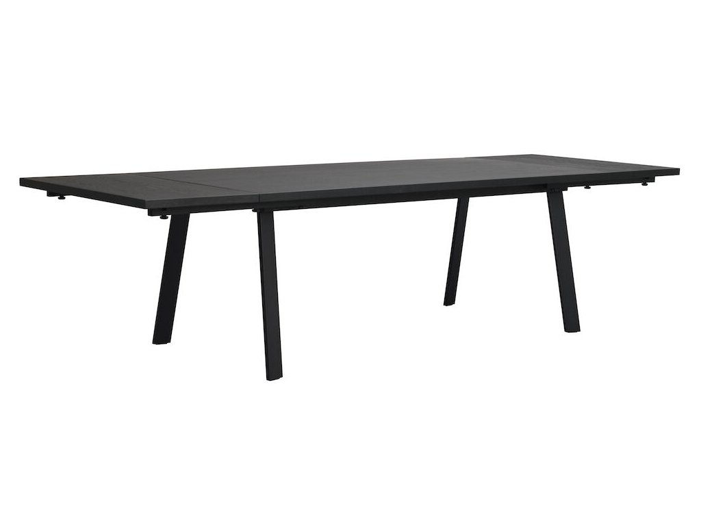 Jídelní stůl Winnipeg 200x100 v provedení černě lakovaný dub s černými kovovými nohami. Jídelní stůl má plné hrany a dýhovaný povrch. Nohy jsou práškově lakované s pískovou strukturou. Je také možné dokoupit prodloužení, pokud chcete stůl prodloužit, maximální délka 300 cm.