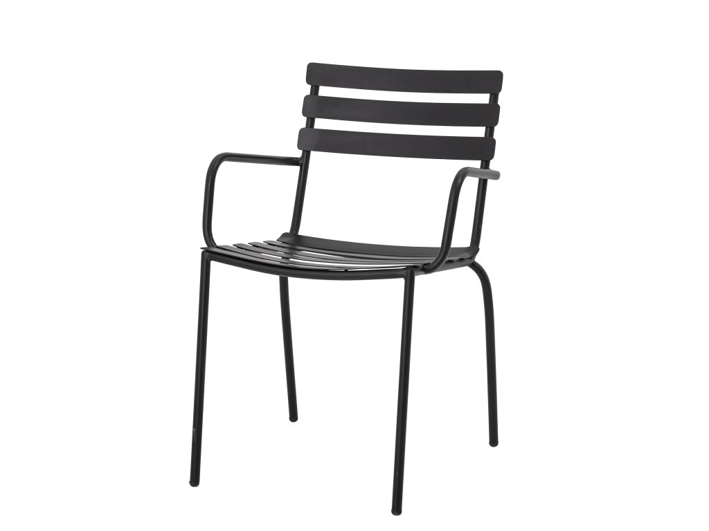 Jídelní židle Monsi od Bloomingville je pohodlná a praktická venkovní židle s područkami. Černá židle je vyrobena z pozinkovaného plechu, takže je odolná a vhodná do venkovních prostor. Je stohovatelná. Je to perfektní zahradní židle pro zahradní posezení a dlouhé letní noci.Doplňkové parametry