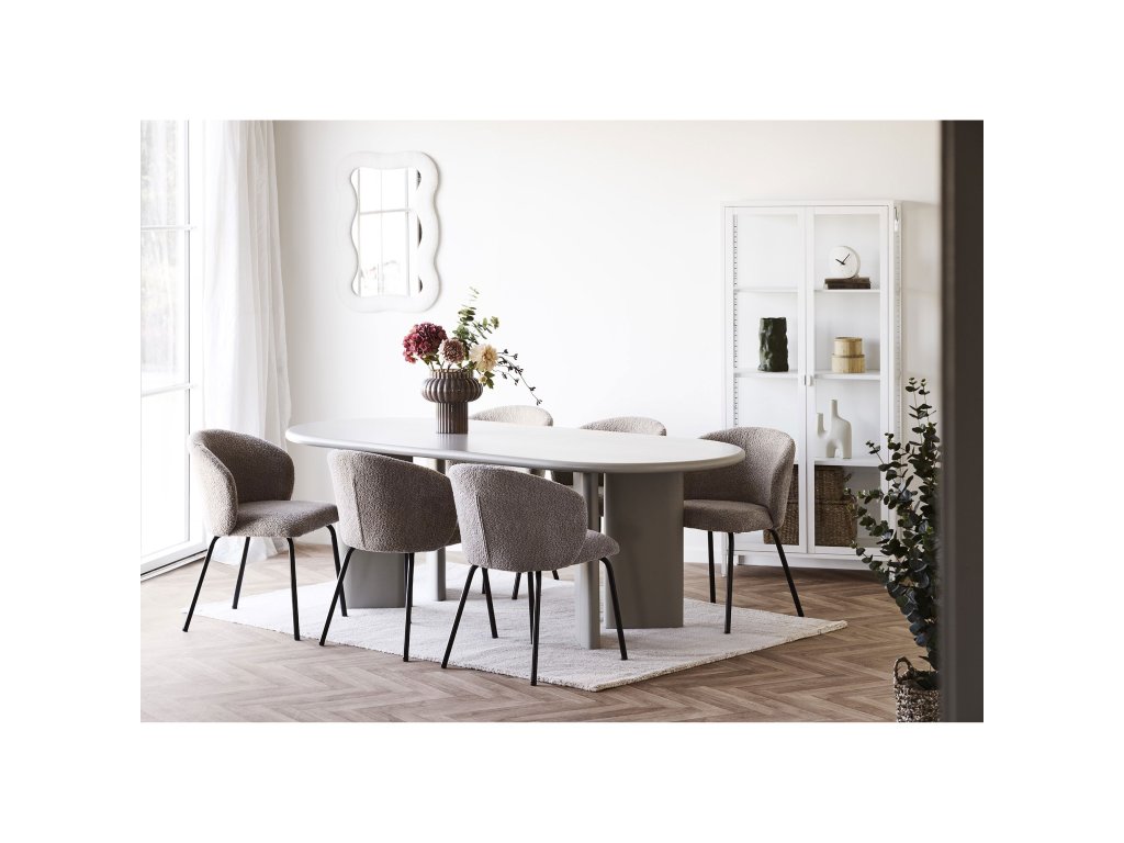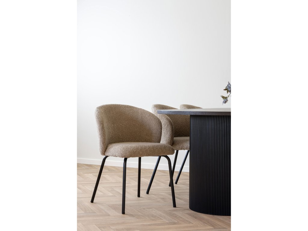 Jídelní židle Safira od dánského výrobce House Nordic s očarujícím designem je ideální volbou pro vytvoření elegantního a útulného jídelního prostoru. Čalounění z bouclé látky v béžové barvě poskytuje příjemný pocit a vysoce komfortní posezení, zatímco pevná konstrukce z kvalitního materiálu zajišťuje dlouhou životnost a stabilitu. Moderní vzhled a neutrální tóny se snadno začlení do různých interiérových stylů, dodávajíc vaší jídelně sofistikovaný a přívětivý charakter.