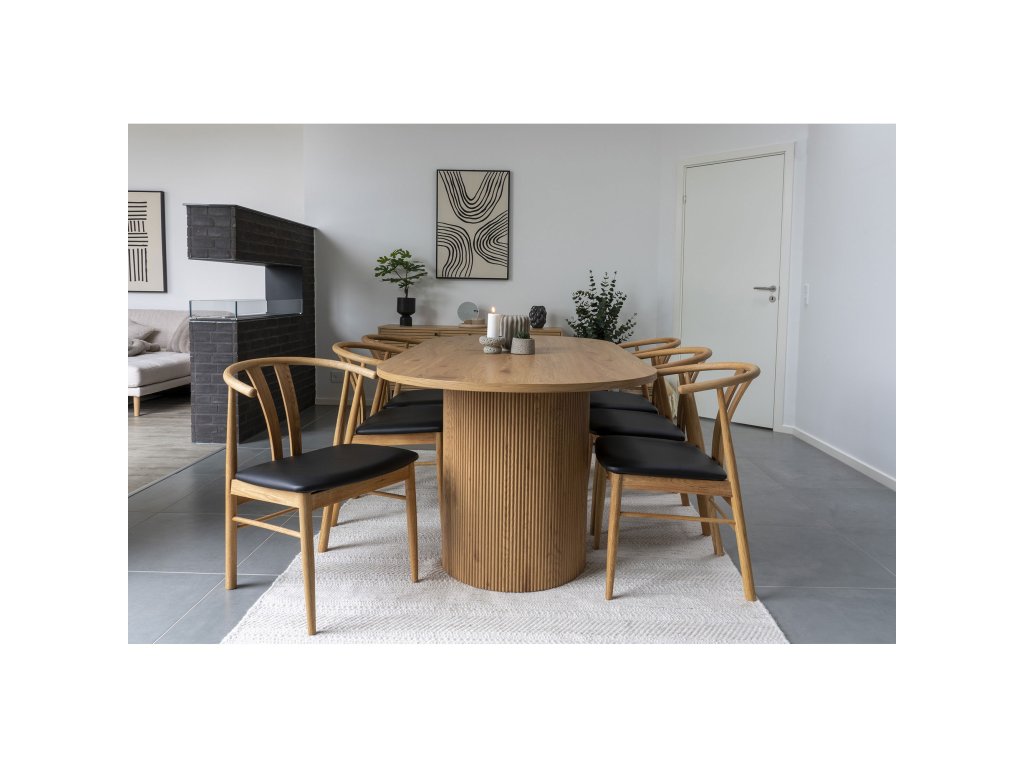 Elegantní jídelní židle Artenara kombinuje nadčasový design s pohodlným posezením. Čalounění z kvalitní umělé (eko) kůže v kombinaci černé a přírodní barvy vytváří vyvážený kontrast, který prostor opticky zvýrazní a zároveň působí vkusně a stylově.