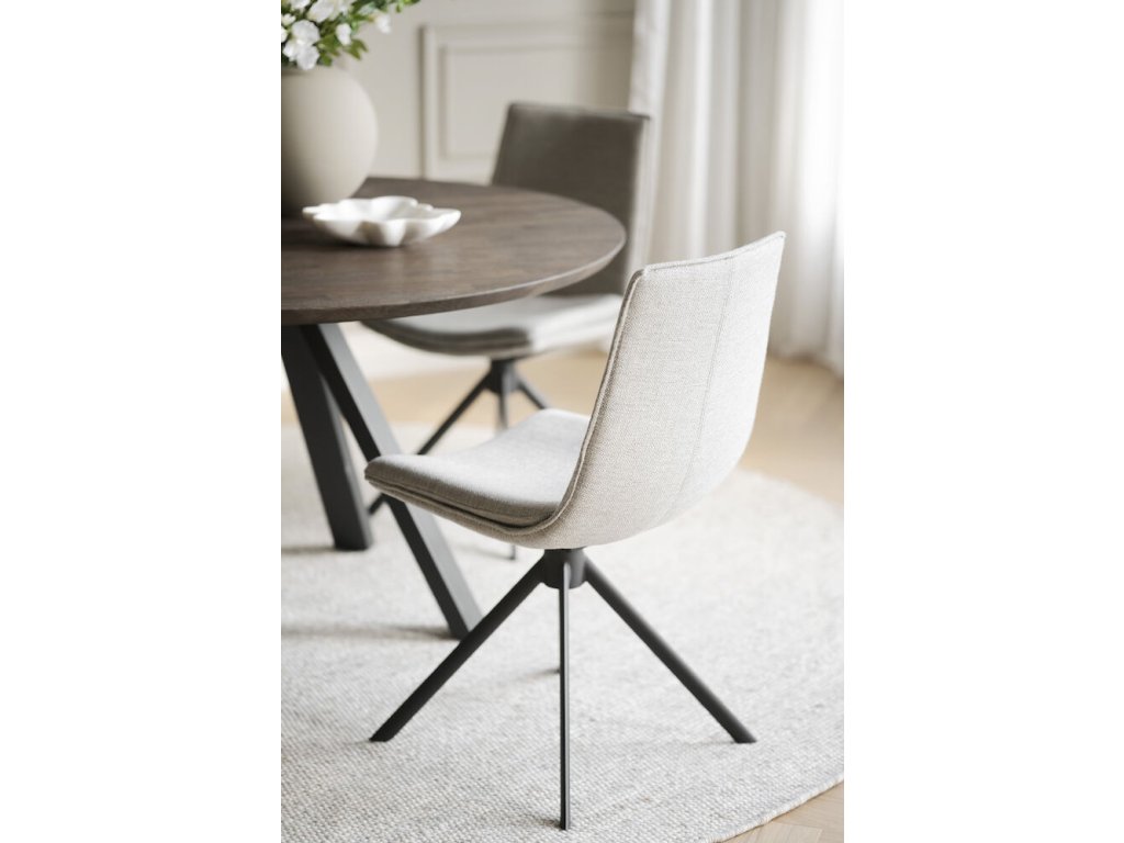 Židle Lowell je moderní a flexibilní otočná židle, která nabízí vysokou kvalitu, komfort a stylový vzhled. Rám je z překližky potažené pravou kůží nebo látkou podle varianty, s nohami z práškově lakovaného kovu. Tato židle se velice dobře hodí ke většině jídelních stolů bez ohledu na styl, a díky svému originálnímu designu je také vhodná jako výrazný prvek v chodbách, kancelářích nebo ložnicích.