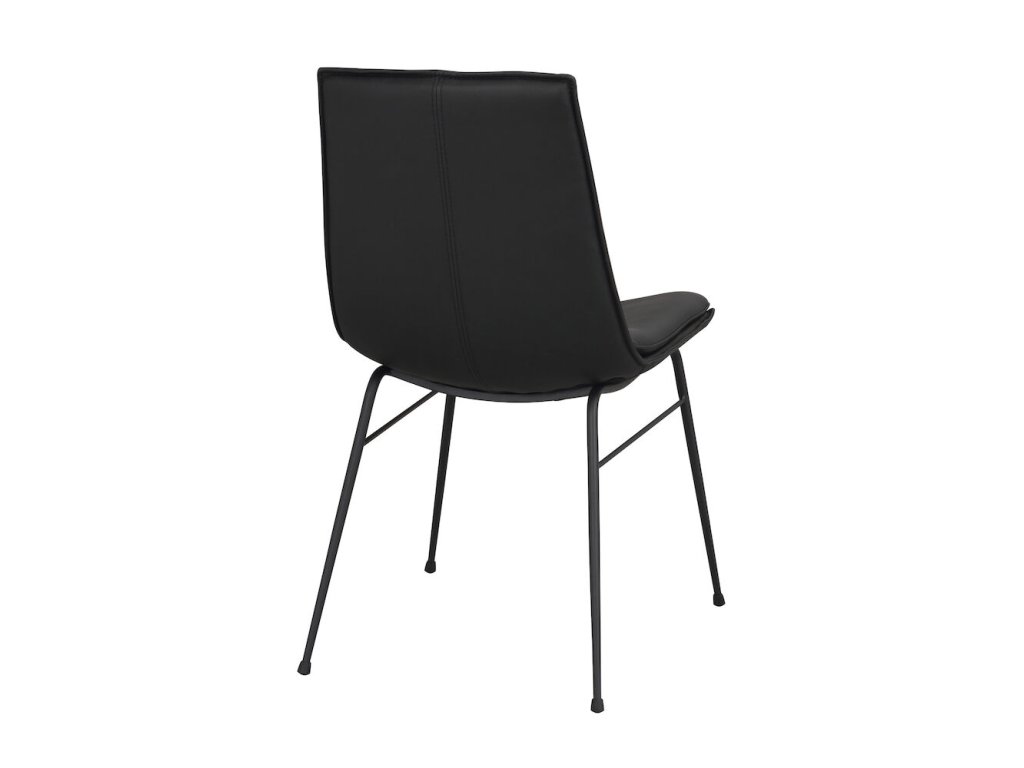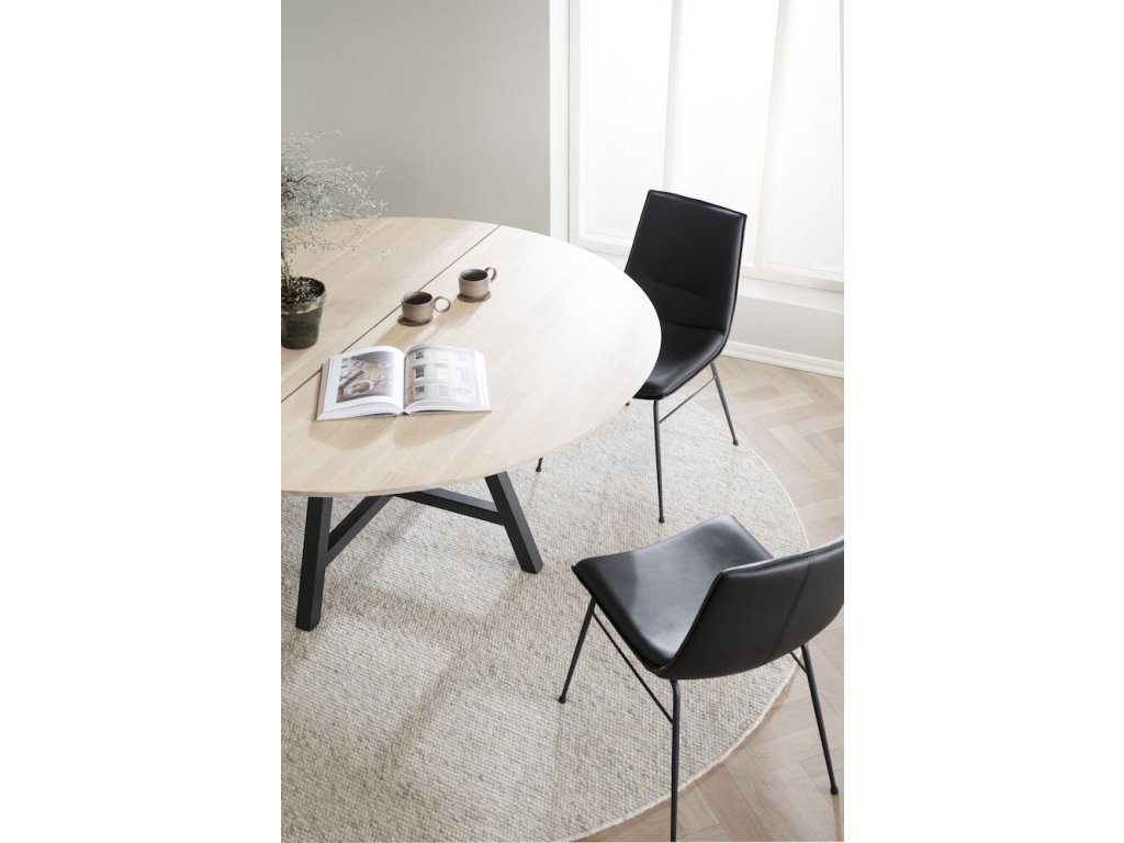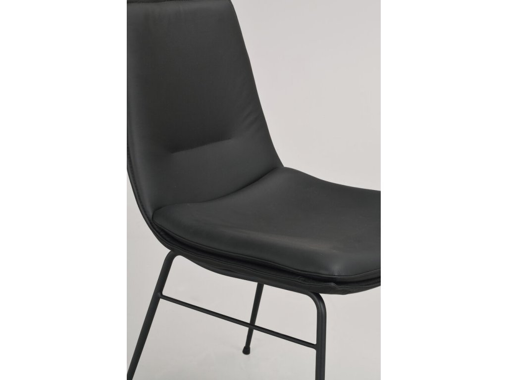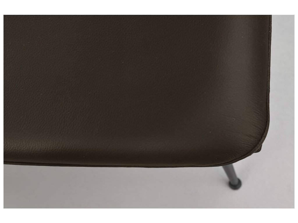 Další varianta je stejně kvalitní, ale s černou kůží na rámu a s pevnými nohami z práškově lakovaného černého kovu. Tento design je velmi oblíbený pro své univerzální a elegantní provedení.