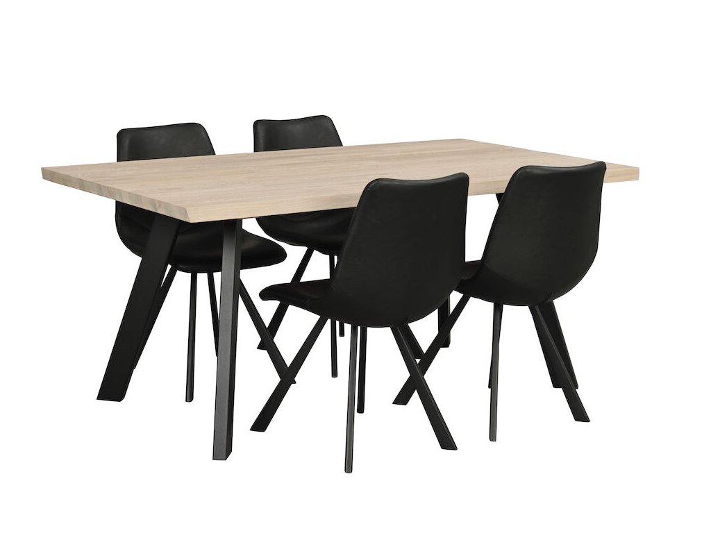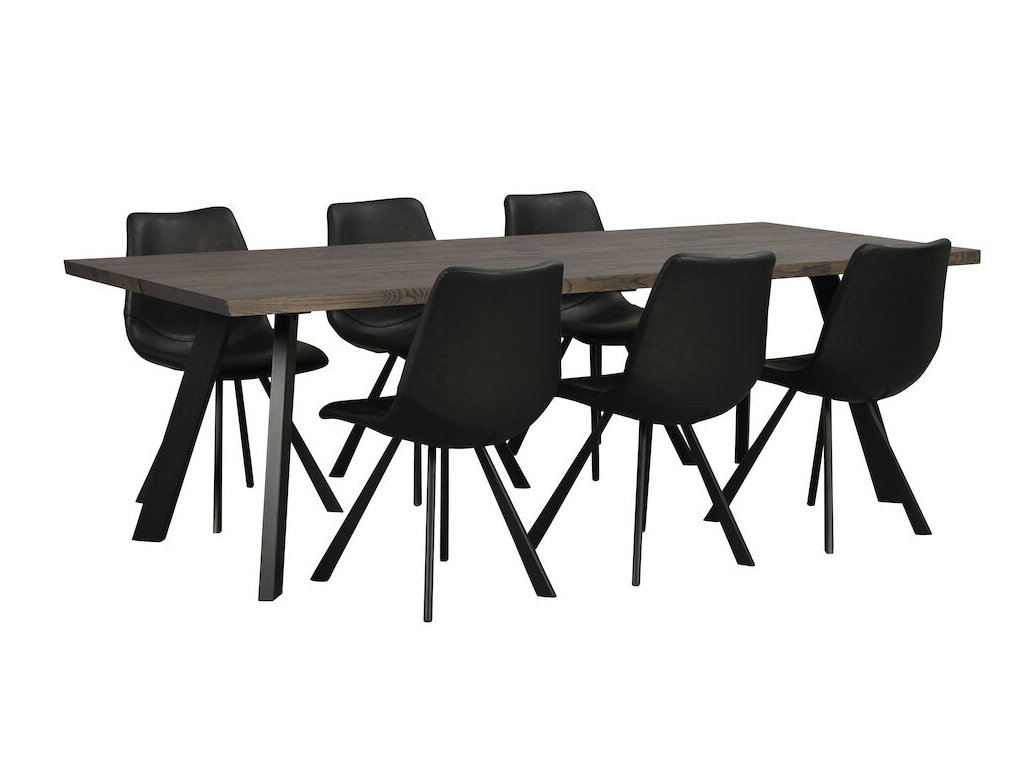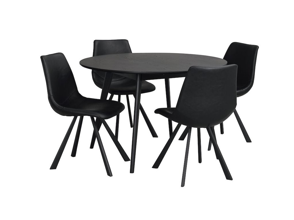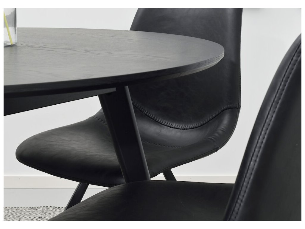 Další varianta je ve stejné designové linii s černým potahem z umělé kůže, ozdobným prošíváním a kovovými nohami s černým práškovým lakem. Kaštanové sedadlo s ozdobným prošíváním poskytuje vysoký komfort a zároveň esteticky doplňuje vzhled. Kovové nohy z práškového laku jsou mírně rozšířené pro větší stabilitu.