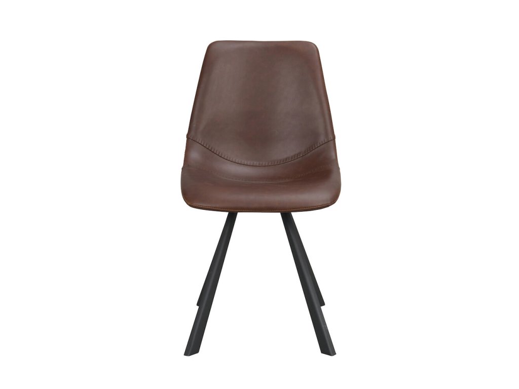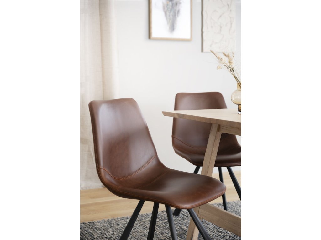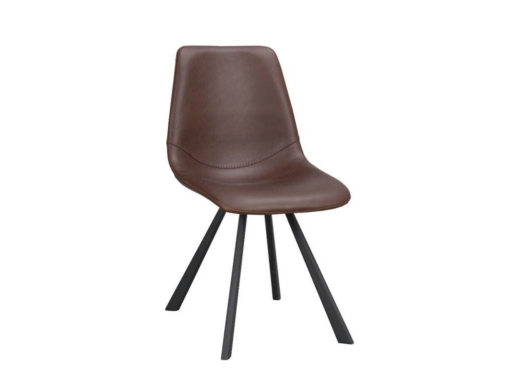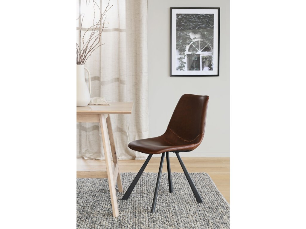 Židle Auburn nabízí moderní a stylové řešení pro jídelnu, bar nebo barovou část. Model s hnědým potahem z umělé kůže je zdoben ozdobným prošíváním, které dodává židli eleganci a detail. Nohy z práškově lakovaného černého kovu jsou mírně rozšířené, což zajišťuje stabilitu a moderní vzhled.