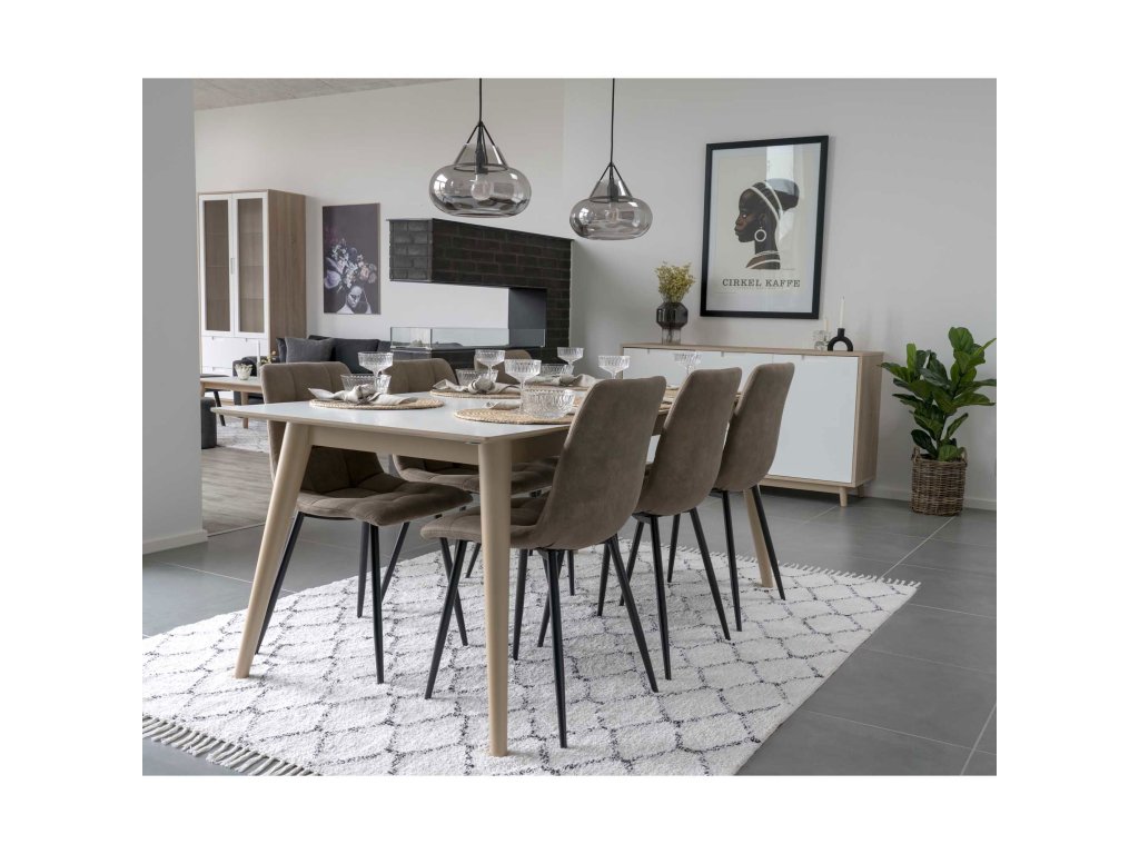 Jídelní židle Middelfart je stylish a komfortní volba pro váš jídelní prostor. Měkký sametový potah dodává židli elegantní vzhled a příjemný pocit při sezení. Tento model kombinuje moderní design s příjemnou texturou, která dodá vašemu interiéru luxusní nádech.