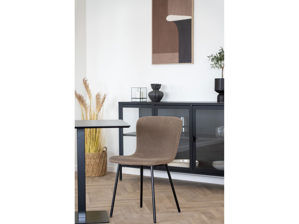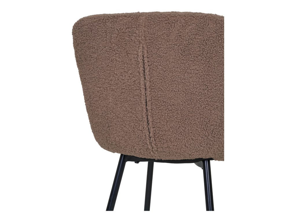 Jídelní židle Halden zaujme svým jemným, moderním vzhledem a příjemným čalouněním z trendovní bouclé látky. Hnědý potah dodává židli elegantní a útulný charakter, který se hodí jak do moderních, tak skandinávsky laděných interiérů. Černé kovové nohy vytvářejí stabilní základ a zároveň dodávají židli moderní kontrastní vzhled.