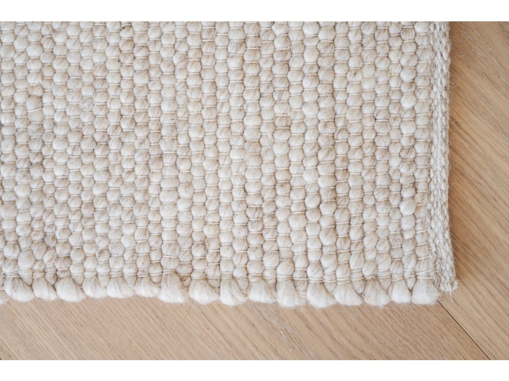 Koberec Auckland z béžové vlny je odolný, vysoce kvalitní ručně tkaný koberec. Vyroben ze 100% vlny, je teplý a pohodlný na chůzi. Auckland je k dispozici v několika velikostech a díky svým přírodním barvám se snadno umístí do různých místností vašeho domova. Doporučuje se podložka pod koberec. Je k dispozici také v přírodní a šedé barvě.