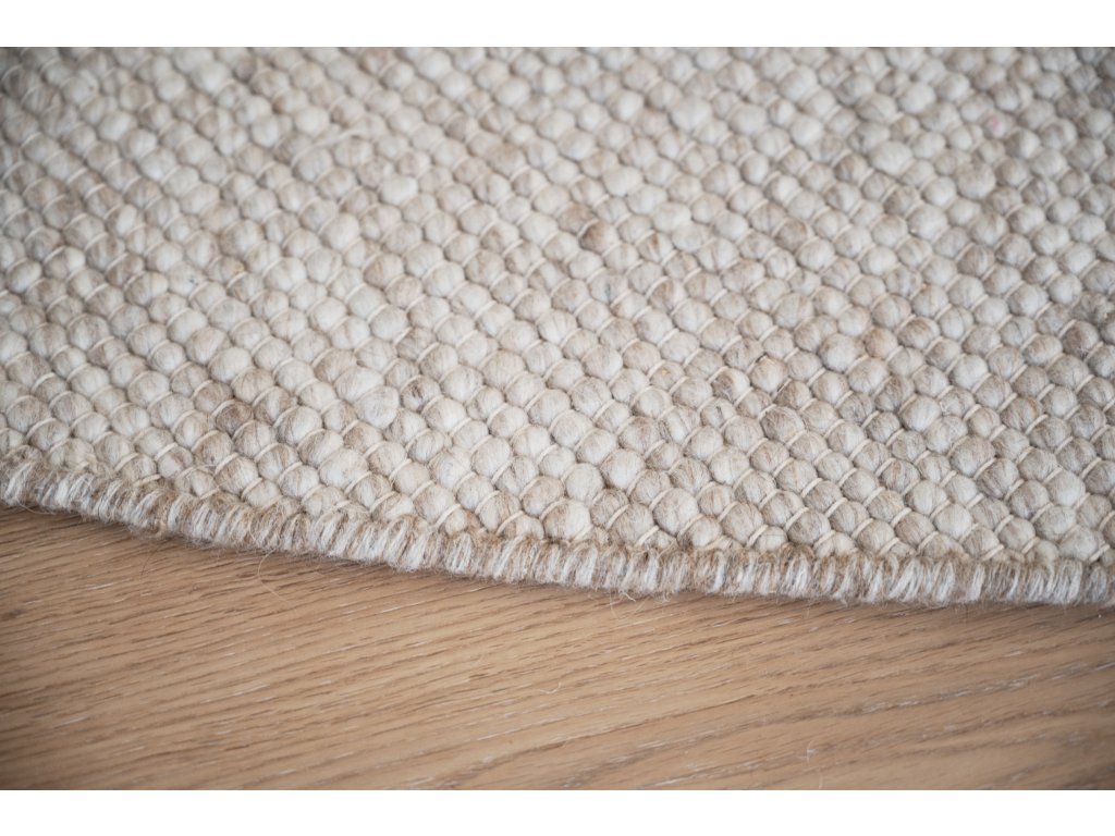 Koberec Auckland z šedé/běžové/prírodní vlny je ručně tkaný koberec vysoké kvality. Koberec je vyroben ze 100% vlny, je teplý a pohodlný na chůzi. Auckland je k dispozici v několika velikostech a díky svým přírodním barvám se snadno umisťuje do různých místností. Doporučuje se protiskluzová podložka/ochrana pod koberec.