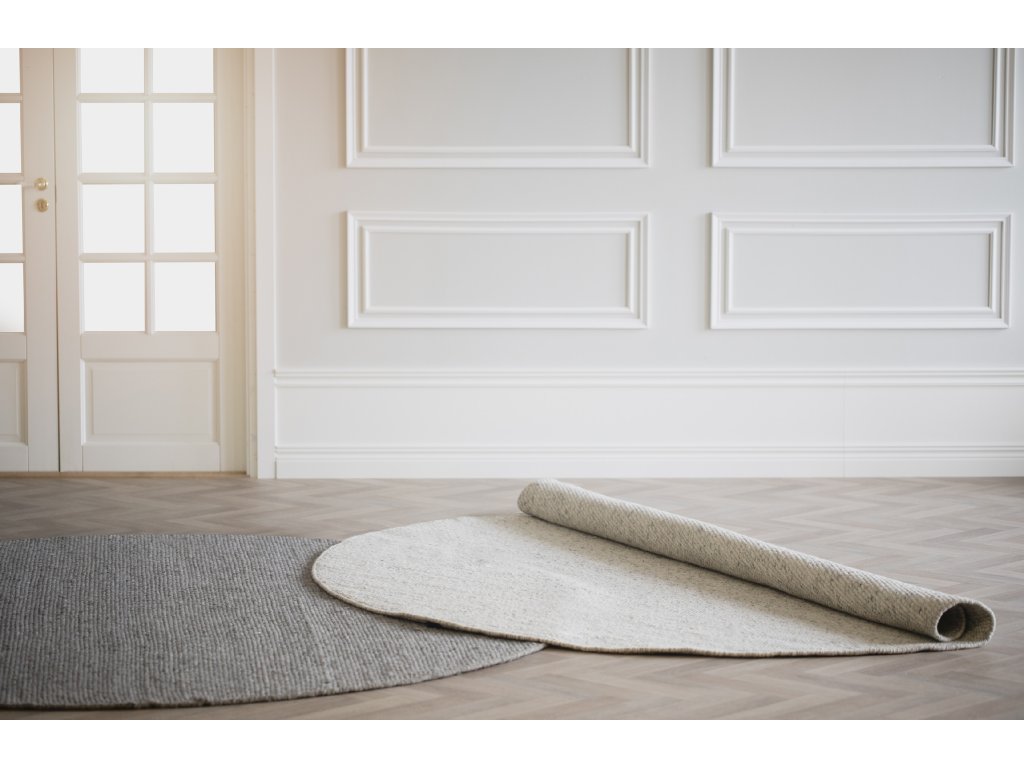 Kulatý vlněný koberec, šedý/béžový/prírodní, 250 cm, Auckland