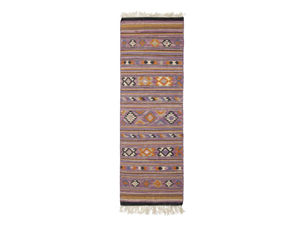Koberec Yolanda od Bloomingville je unikátní koberec s grafickým tkaným vzorem mincí z bavlny a vlny ve fialových tónech. Dodá místnosti teplo a osobní výraz a přehozí se do každé místnosti.Doplňkové parametry