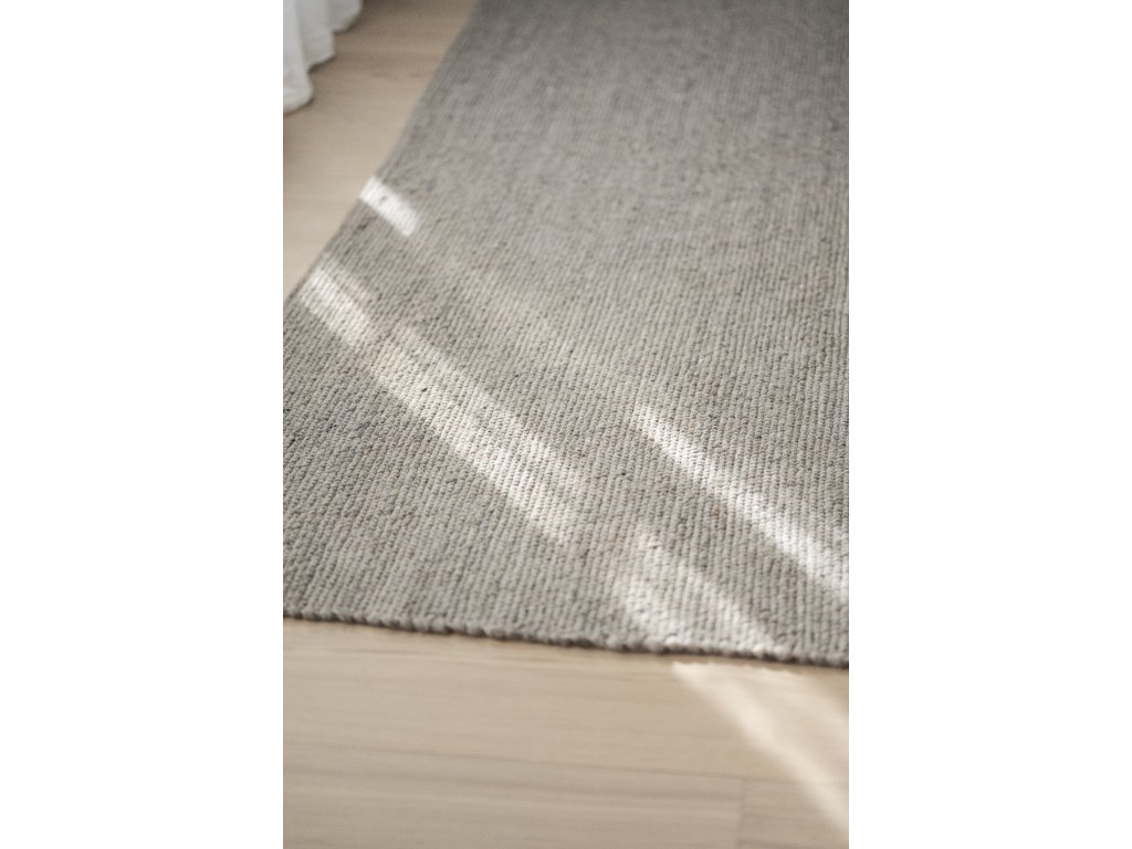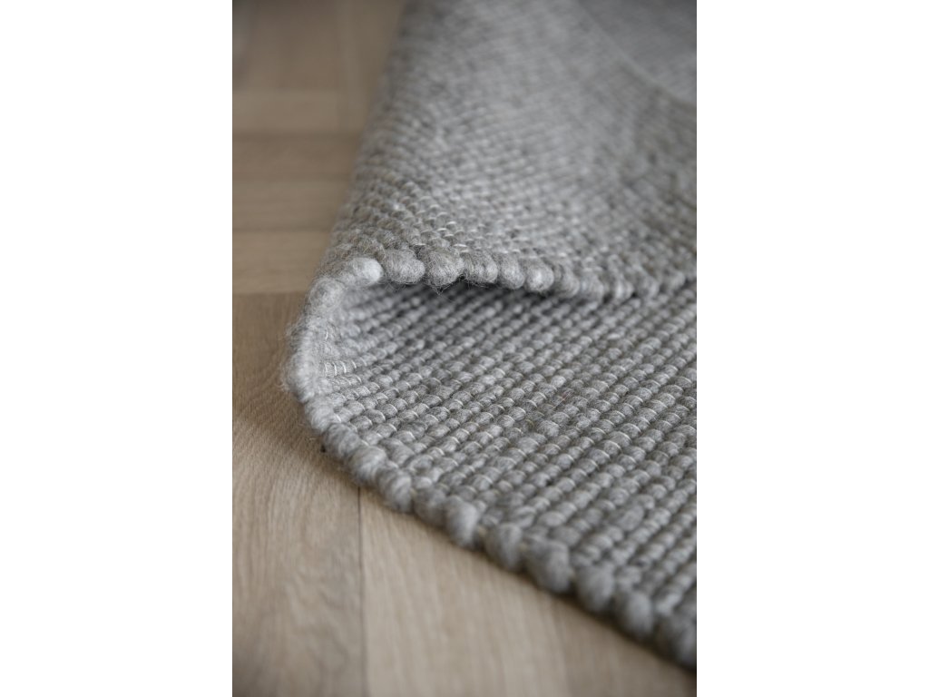 Koberec Auckland z šedé vlny je ručně tkaný koberec vysoké kvality. Koberec je vyroben ze 100% vlny, je teplý a pohodlný na chůzi. Auckland je k dispozici v několika velikostech a díky svým přírodním barvám se snadno umisťuje do různých místností. Doporučuje se protiskluzová podložka/ochrana pod koberec.