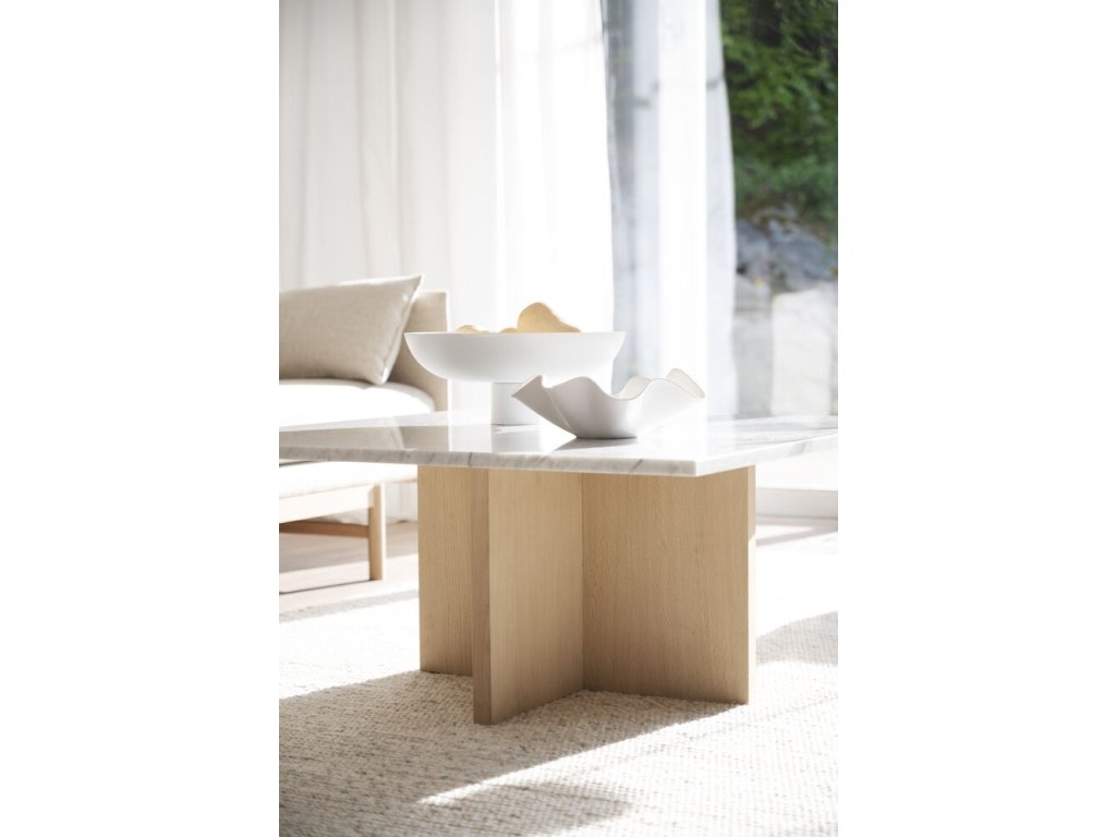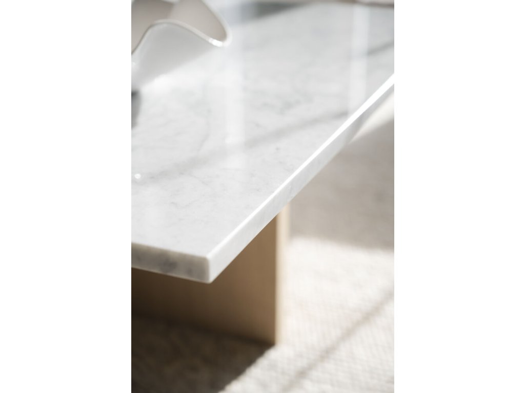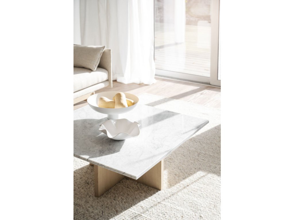 Luxusní konferenční stolek Brooksville spojuje skandinávský design s japonským minimalismem. Deska z pravého italského carrarského mramoru působí elegantně a nadčasově, zatímco bíle omyté dřevěné nohy dodávají interiéru přirozenou lehkost. Každý kus je originál díky jedinečné kresbě mramoru. Série Brooksville nabízí různé kombinace tvarů a barev, takže si snadno vytvoříte harmonický set pro svůj obývací prostor.