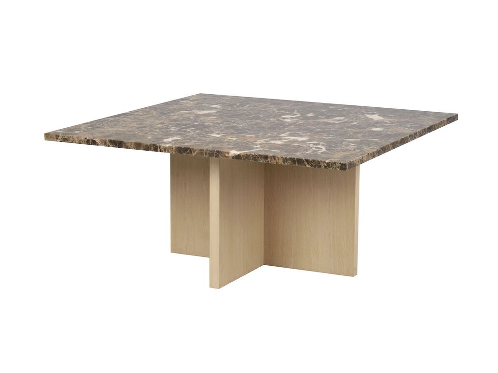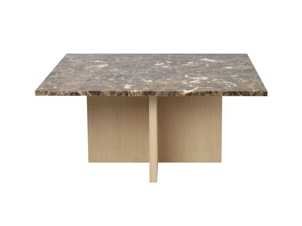 Čtvercový konferenční stolek, 90x90 cm, hnědý mramor, bílený dub, Brooksville