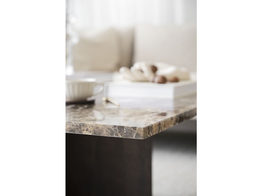 Luxusní konferenční stolek Brooksville v japonském stylu, kde se skandinávský design setkává s japonským minimalismem. Čtvercová deska stolu z exkluzivního císařského mramoru spolu s hnědými dřevěnými nohami s certifikací FSC vám dodá odolný konferenční stolek a klidnou atmosféru v místnosti. Konferenční stolek je součástí série Brooksville, kde si můžete vybrat mezi nohami stolu z hnědého nebo bíleného dřeva a kulatou nebo čtvercovou deskou stolu z hnědého nebo bílého mramoru. Upozorňujeme, že mramor je přírodní kámen, což znamená, že se mohou vyskytnout barevné odchylky a nerovný povrch.