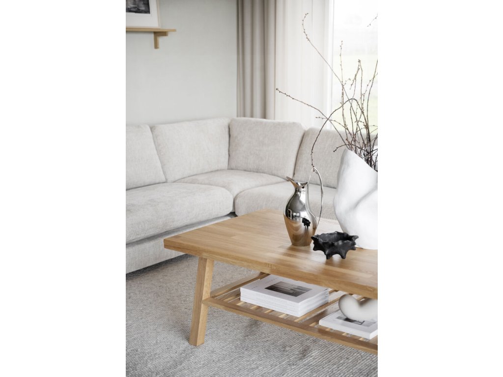 Nadčasový konferenční stolek v elegantním designu s mírně roztaženými nohami a praktickou úložnou policí. Konferenční stolek je vyroben z masivního evropského dubu s ozubeným spojem a lakovanou povrchovou úpravou. Konferenční stolek je součástí naší rozsáhlé série Brooklyn, kde všechny díly mají certifikaci FSC®.