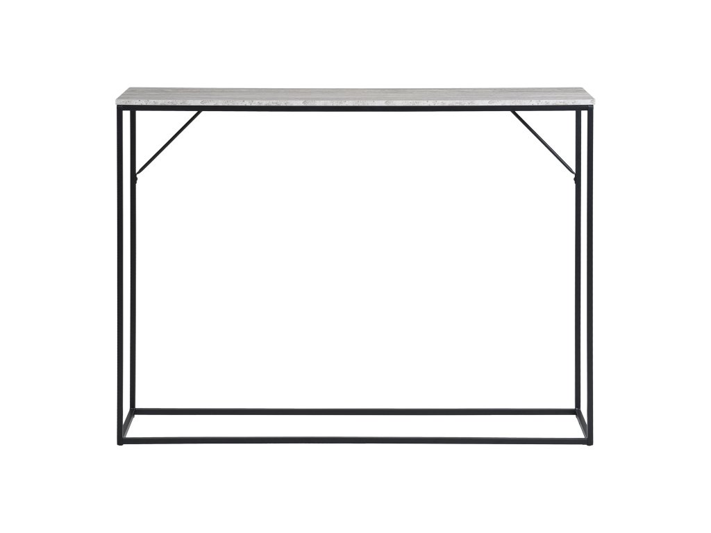 Konzolový stolek, travertinový vzhled, černý rám, 110x26x80 cm