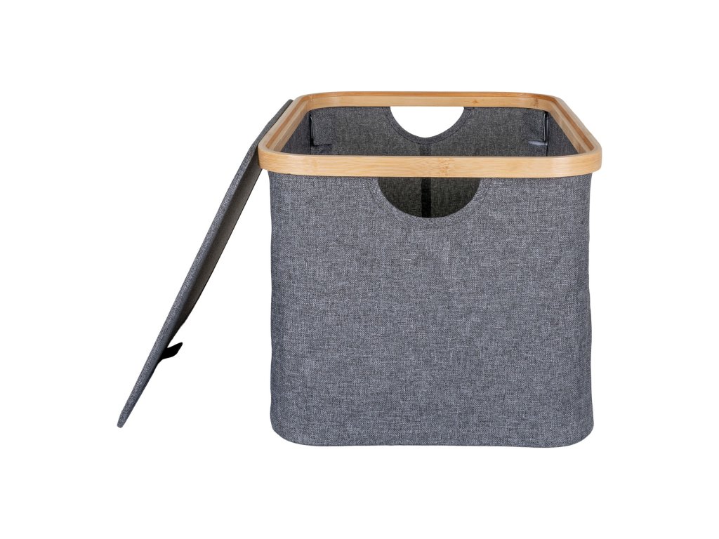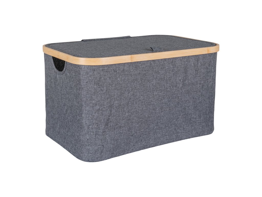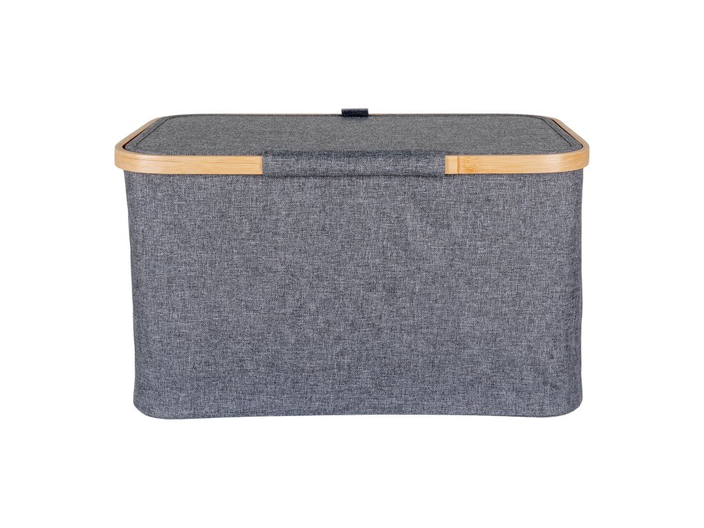 Košík bambus/textil, tmavě šedá, 30x45x25 cm, Noto
