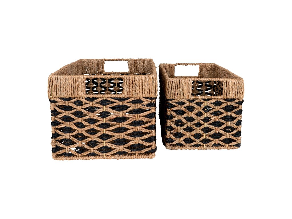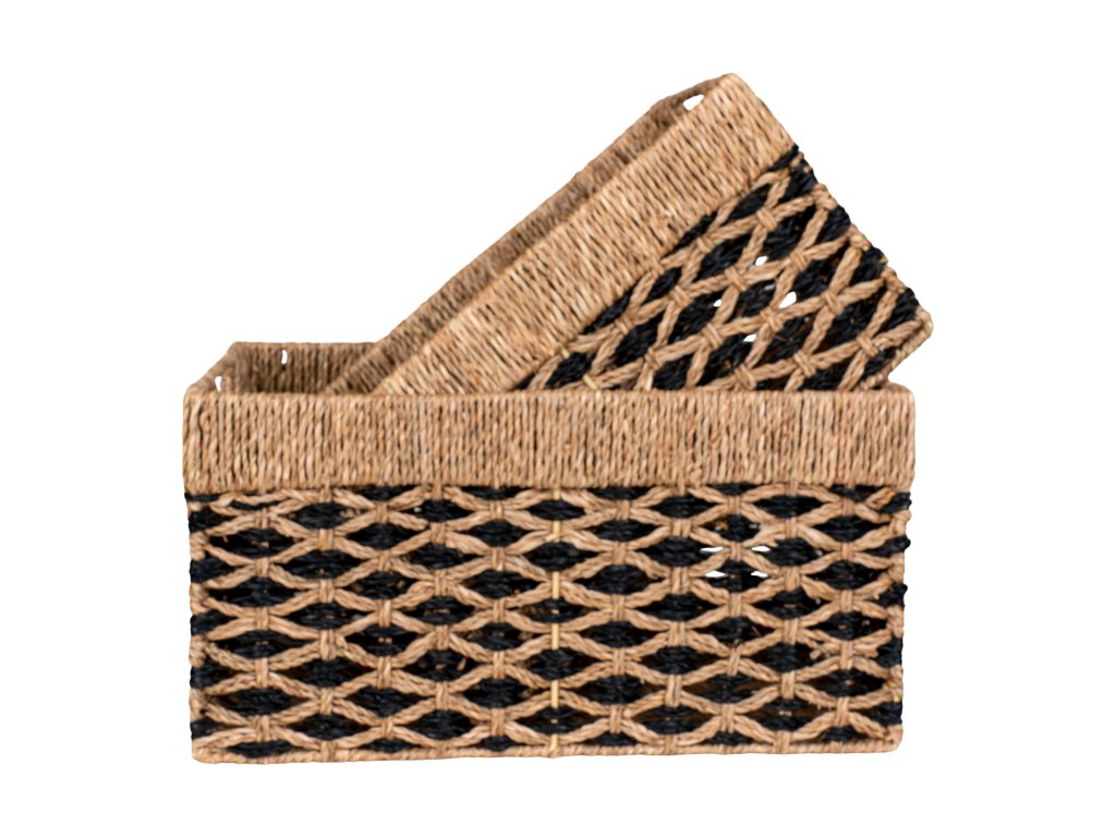 Stylová sada dvou košíků Salar z mořské trávy v kombinaci černé a přírodní barvy dodá interiéru moderní i přírodní nádech. Ručně pletený design vytváří originální vzor, který se hodí jak do obývacího pokoje, tak do ložnice či koupelny.