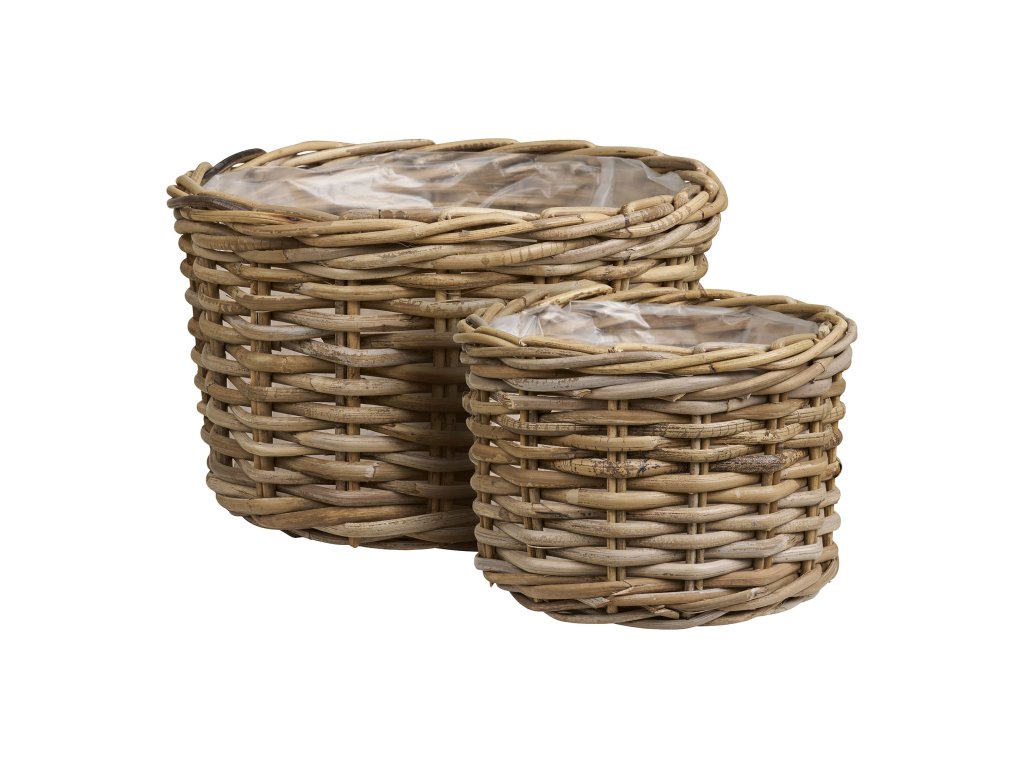 Dodejte svým květinám stylový domov s touto sadou 2 kulatých košíků z přírodního ratanu. Pletené košíky v přírodním odstínu jsou pevné, odolné a díky svému nadčasovému designu krásně zapadnou do každého interiéru i na krytou terasu.