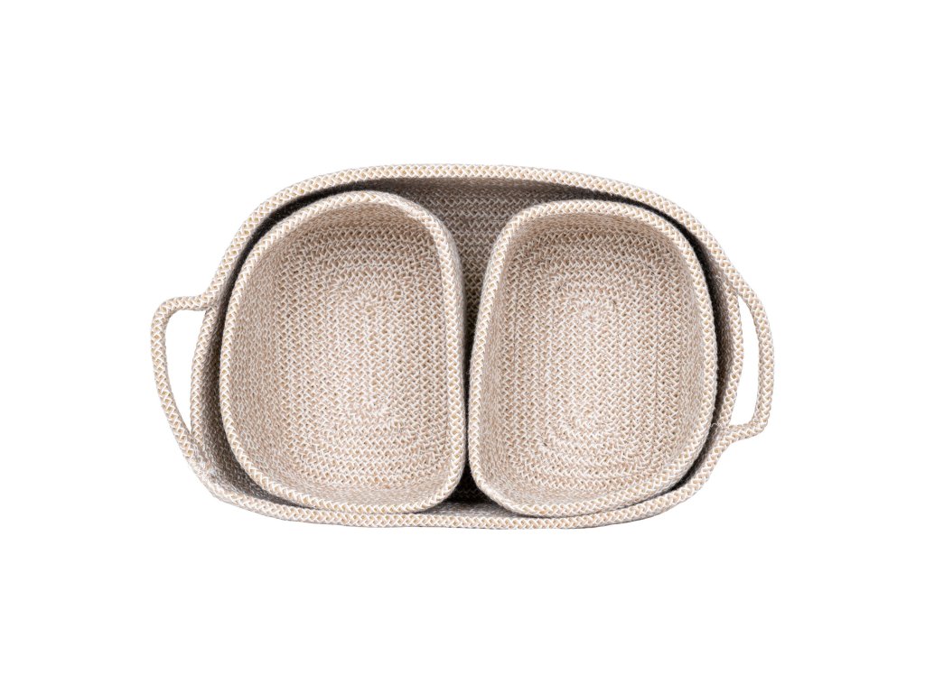 Stylová sada tří úložných košíků z bavlny v univerzální béžové barvě. Jemný design a přírodní vzhled z nich dělají praktický i dekorativní doplněk domácnosti. Skvěle se hodí na organizaci drobností, textilu nebo hraček, a zároveň vnesou do interiéru útulnost a pořádek.