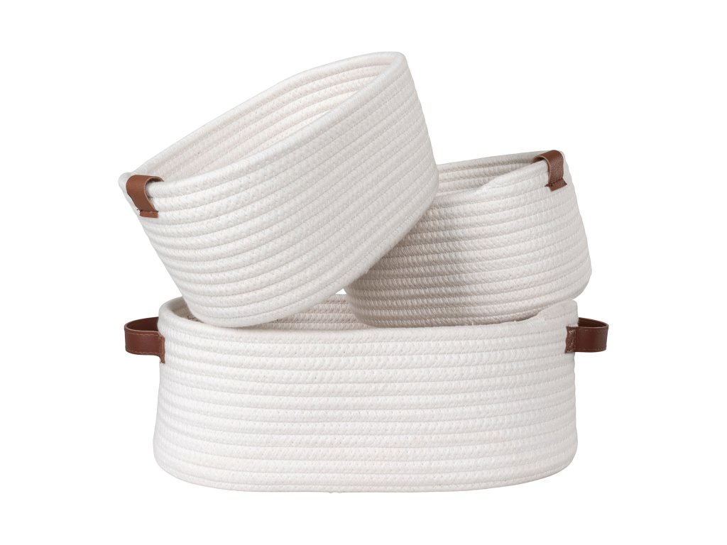 Košíky jsou ideální k ukládání drobností, kosmetiky, hraček nebo prádla. Měkký materiál je příjemný na dotek, bezpečný i pro děti a snadno se udržuje. Díky třem různým velikostem najdou své využití v každé místnosti.