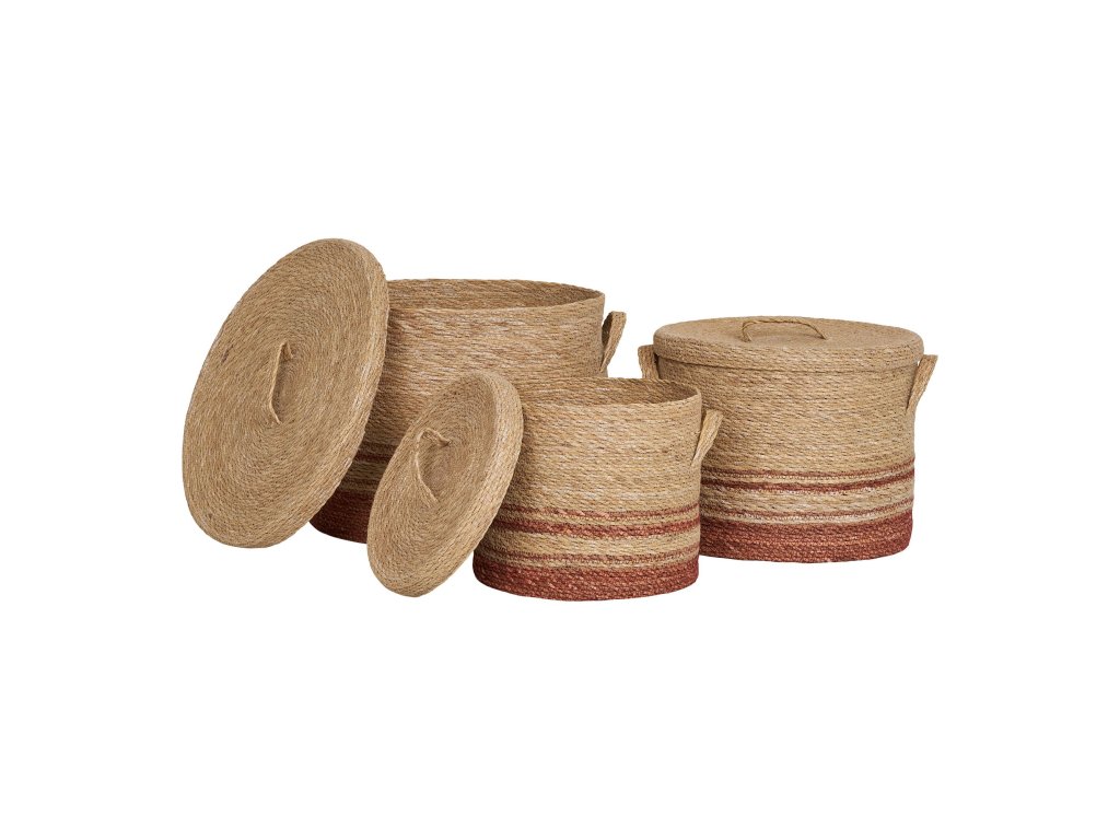 Sada 3 košíků s víkem, mořská tráva, přírodní/hnědá, Budoni