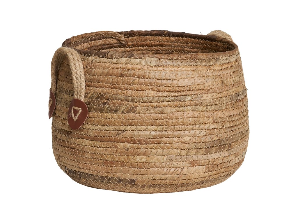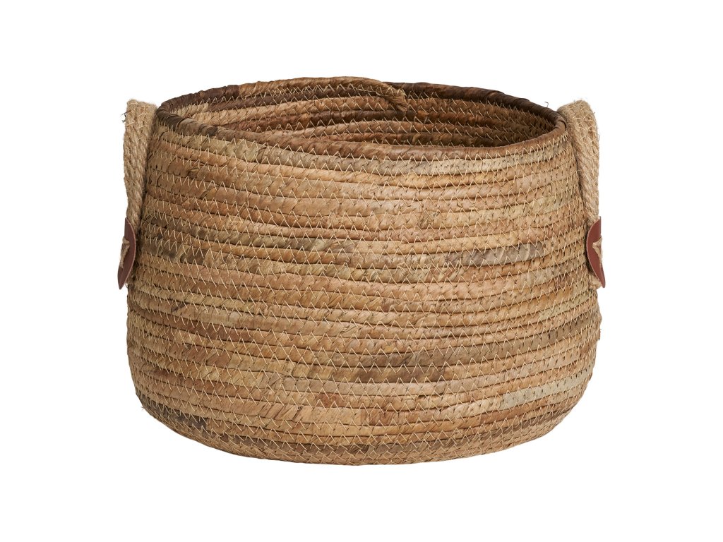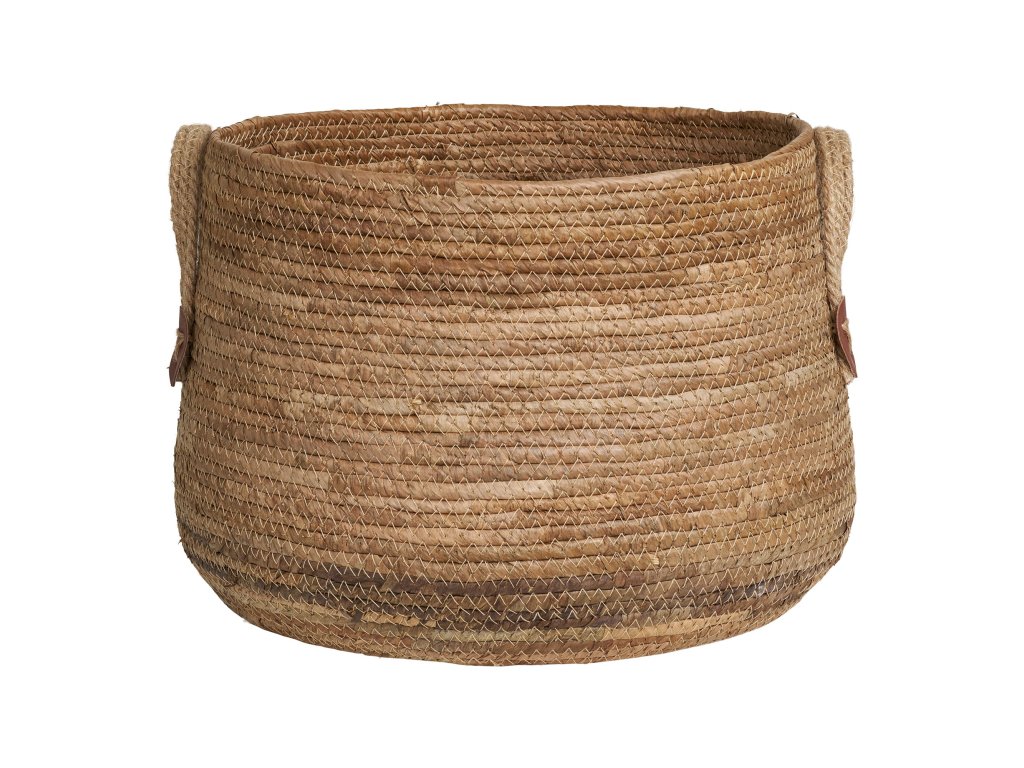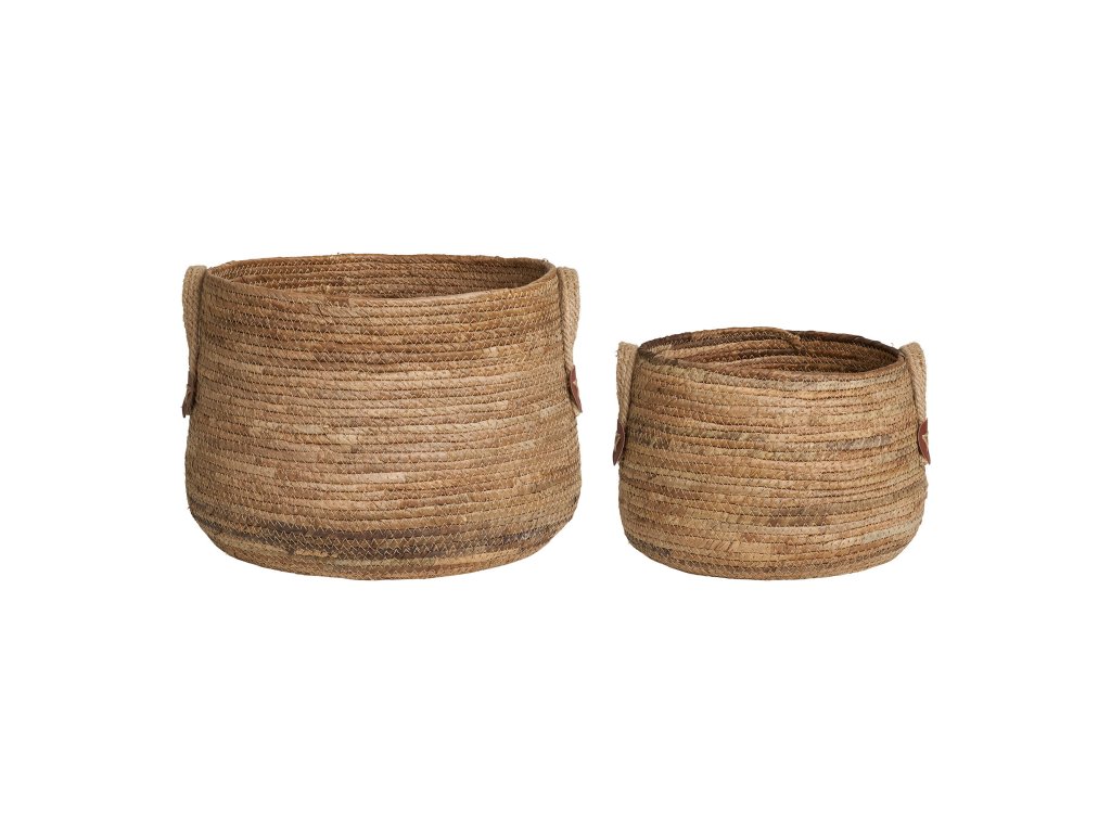 Stylová sada dvou košíků z přírodního materiálu s praktickými uchy pro snadné přenášení. Díky svému jednoduchému a přitom elegantnímu vzhledu se hodí jak do interiéru, tak na terasu či balkon. Využít je lze jako dekorativní obal na květiny nebo jako úložné koše pro různé drobnosti.