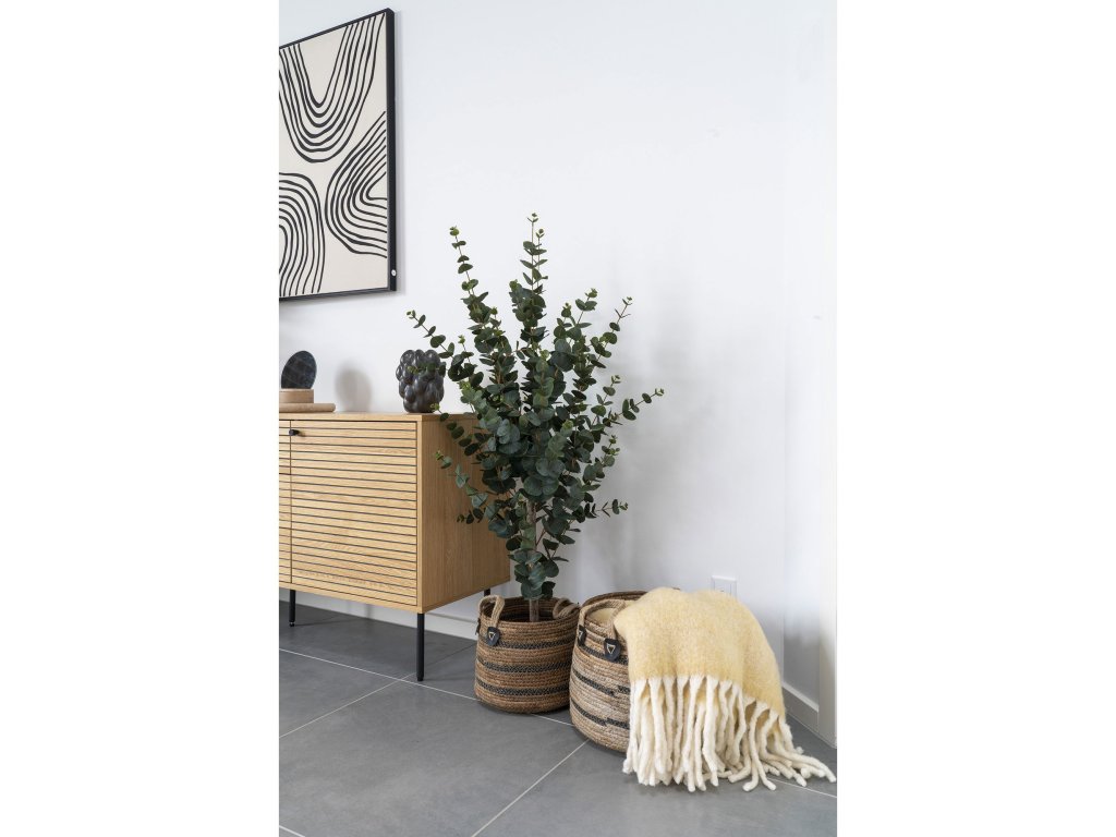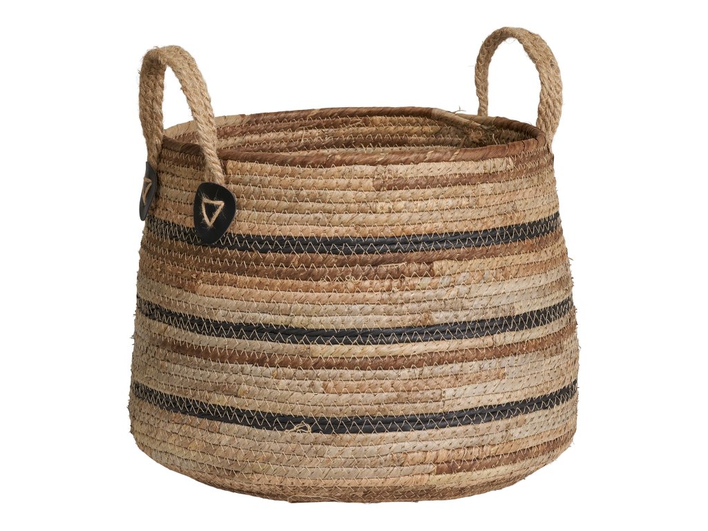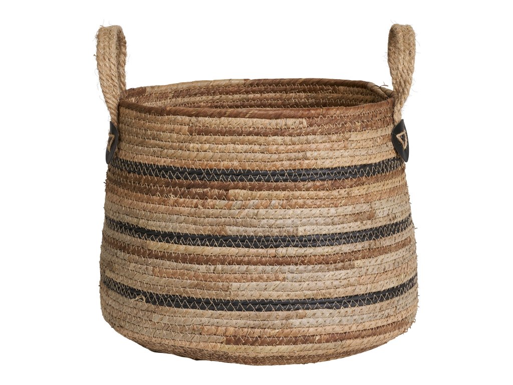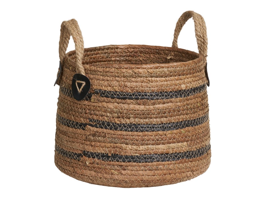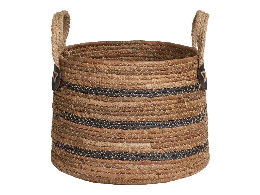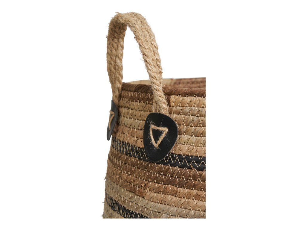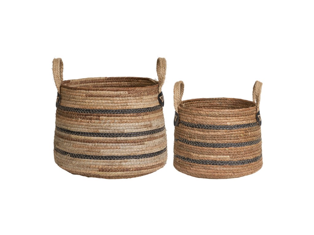 Stylová sada dvou košíků z přírodního materiálu s praktickými uchy pro snadné přenášení. Díky svému jednoduchému a přitom elegantnímu vzhledu se hodí jak do interiéru, tak na terasu či balkon. Využít je lze jako dekorativní obal na květiny nebo jako úložné koše pro různé drobnosti.